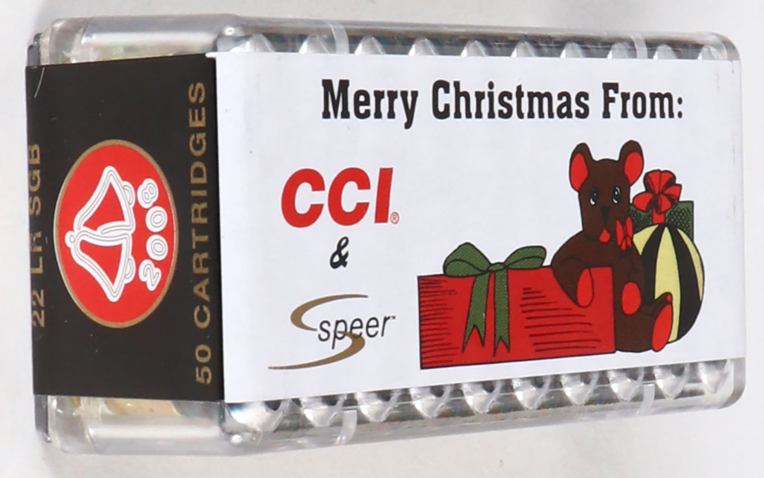CCi, Merry Christmas 2008, .22 Long Rifle, SGB, RHWeb: CCI-19 LR-5, FULL & SEALED, 2pc. Clear plastic tray with label featuring Reloading Santa, plastic tray is clean & clear, label is intact with minty color. Grade: MINT - Value: 100 to 400