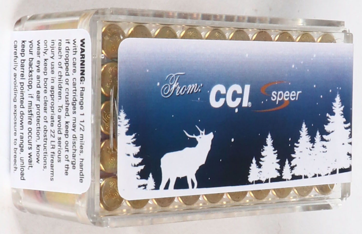 CCi, Merry Christmas 2012, .22 Long Rifle, Segmented Sub-Sonic Hollow Point, RHWeb: CCI-19 LR-9, FULL & SEALED, 2pc. Clear plastic tray with label featuring Elk bugling under a starry sky, plastic tray is clean & clear, label is intact with minty color. Grade: MINT - Value: 100 to 300