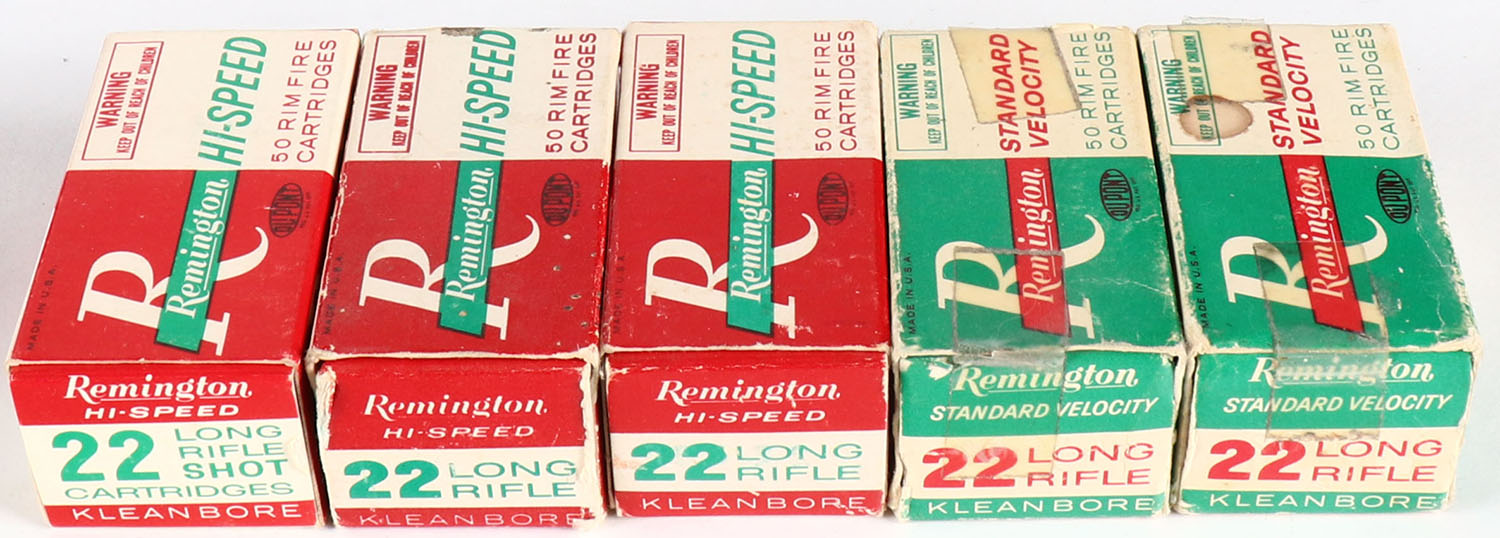 Remington, lot of (5) boxes, (3) appear full, one of the Standard Velocity boxes is partial, Shot box is partial. Grade: Good - Value: 14 to 40