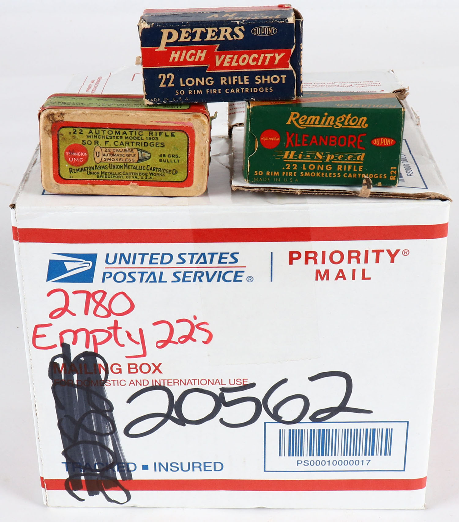 Mixed Mfg., Lot of (35) Empty .22 boxes and (1) empty brick sleeve, all boxes empty. Grade: Excellent - Value: 20 to 100