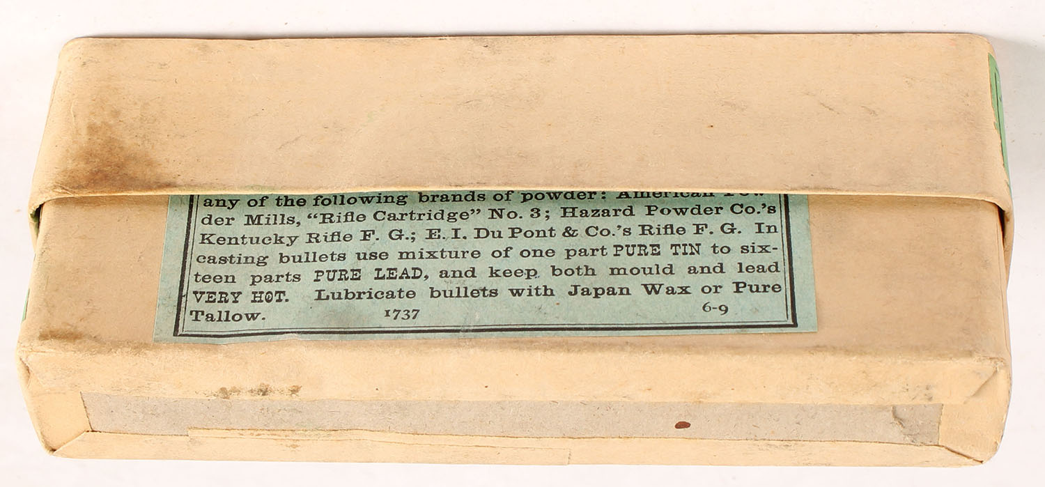 Winchester, Government Cartridges, .45-70-405, Extra Heavy, Solid Head, FULL & SEALED, 2pc. Buff box with green labels, box is solid with excellent color, very minor age soiling & corner wear, edges are mostly crisp, labels are intact. Grade: Excellent + - Value: 150 to 450