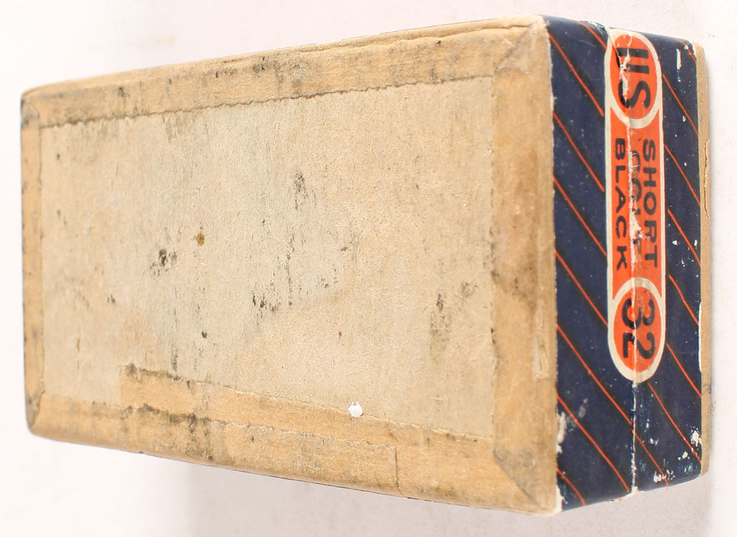 U.S., Central Fire, .32 Short Colt, Black Powder, FULL & SEALED, 2pc. Buff box with blue/orange top & side sealing labels box is solid with excellent color, some shelf wear, very minor corner wear, edges are crisp, labels are intact. Grade: Excellent - Value: 40 to 120