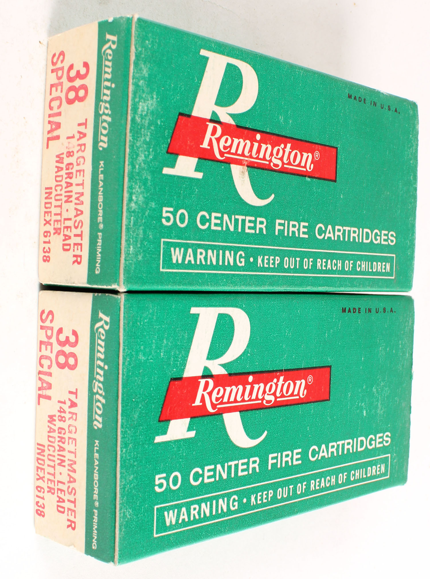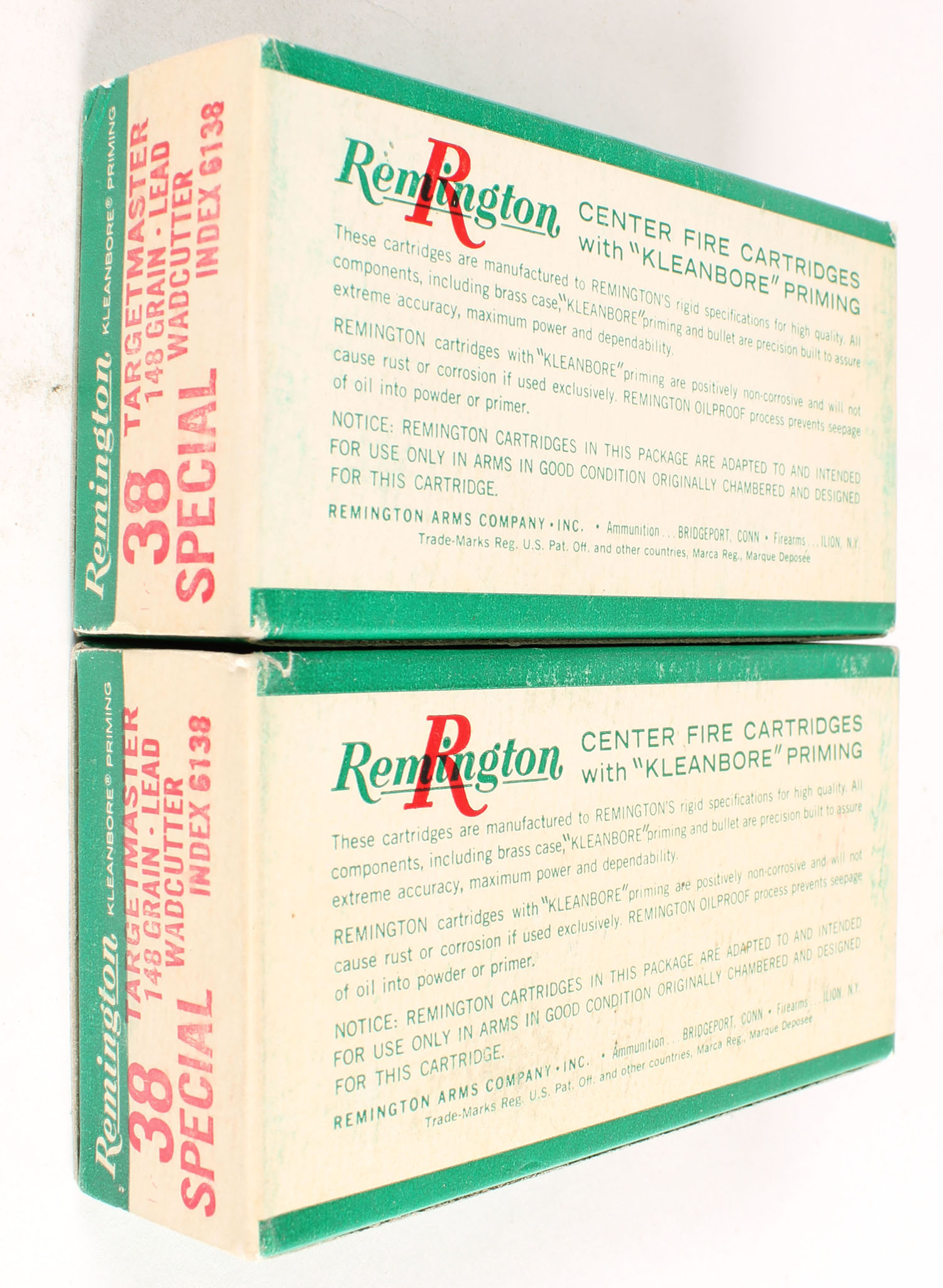 Remington, Lot of (2) Center Fire Cartridges, .38 Special Targetmaster, 148 Grain Wadcutter, both boxes full, boxes are solid, ammo is excellent. Grade: Excellent ++ - Value: 20 to 60