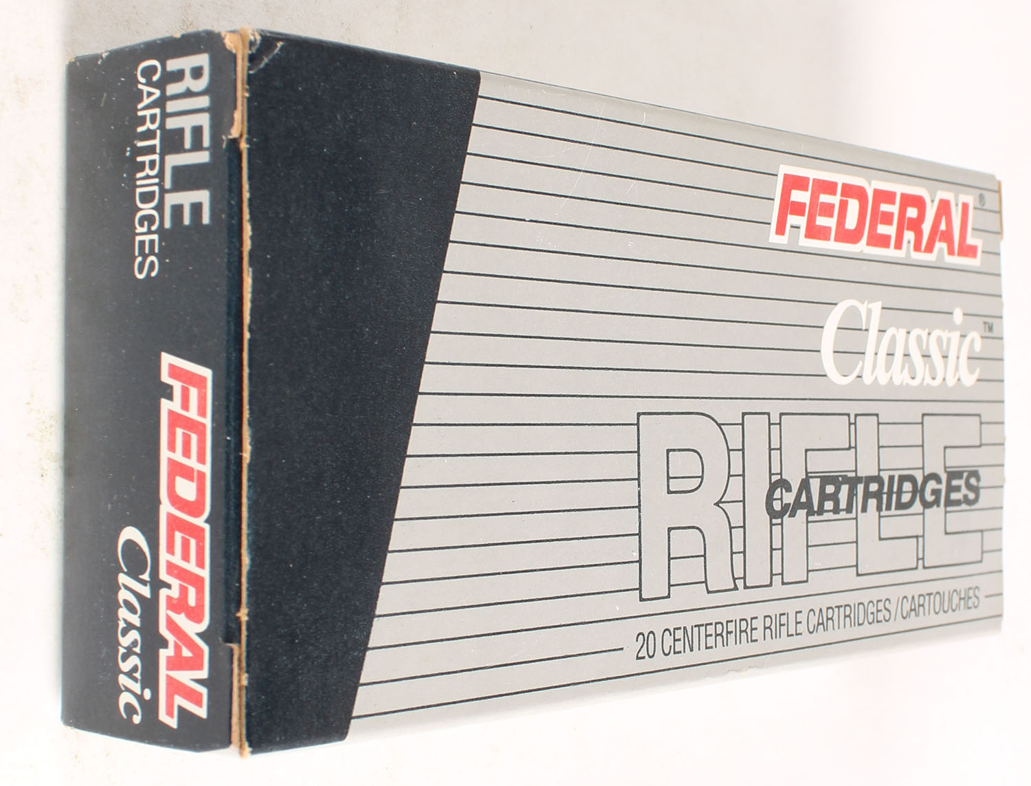 Federal, Classic, 22-250 Rem., 55 Gr. Hi-Shok Soft Point, Full, 1pc. Multi-colored box, box is solid with great color, end flaps are solid, ammo is minty. Grade: Excellent ++ - Value: 20 to 60