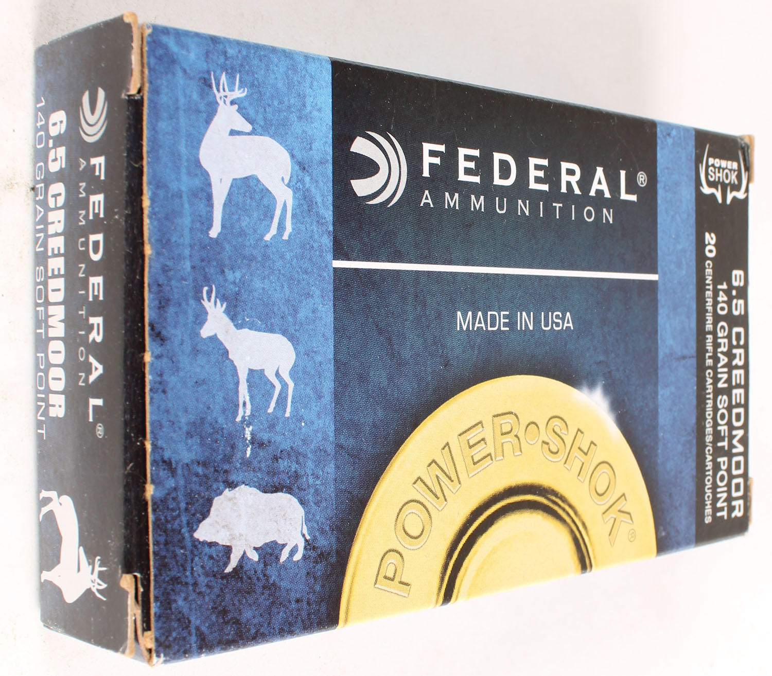Federal, Power Shok, 6.5 Creedmoor, 140 Grain Soft Point, Full, 1pc. multi-colored box, box is solid with excellent color, Ammo is excellent. Grade: Excellent ++ - Value: 20 to 60