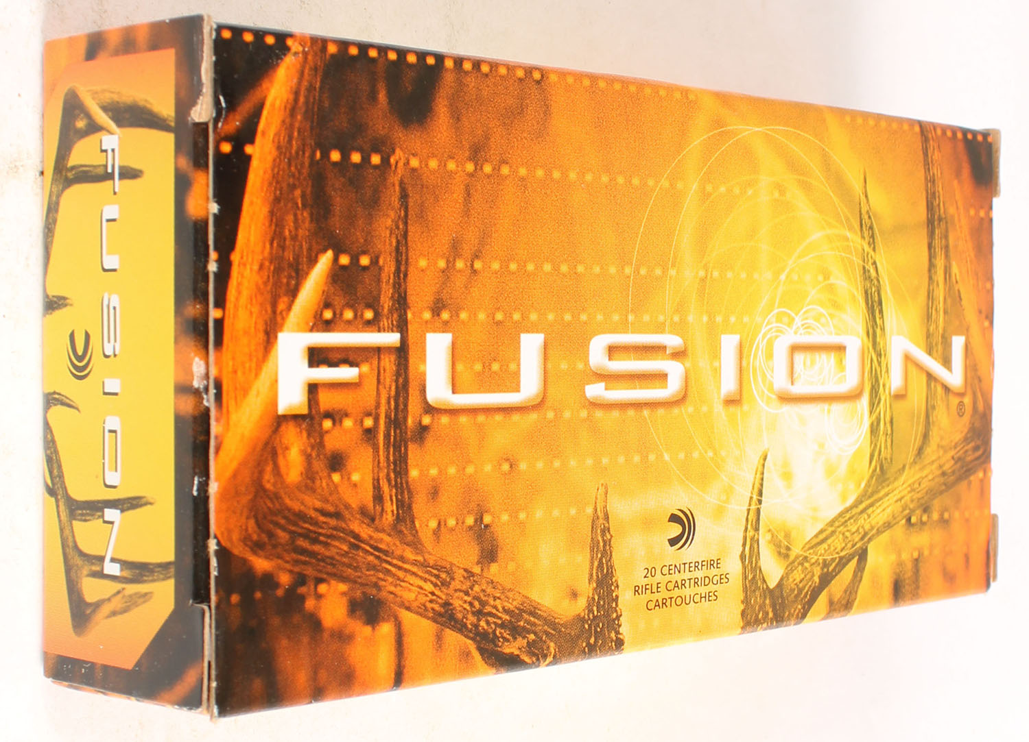 Federal Fusion, 243 WIN., 95 Grain, Full, 1pc. multi-colored box, box is solid with excellent color, Ammo is excellent. Grade: Excellent ++ - Value: 20 to 80