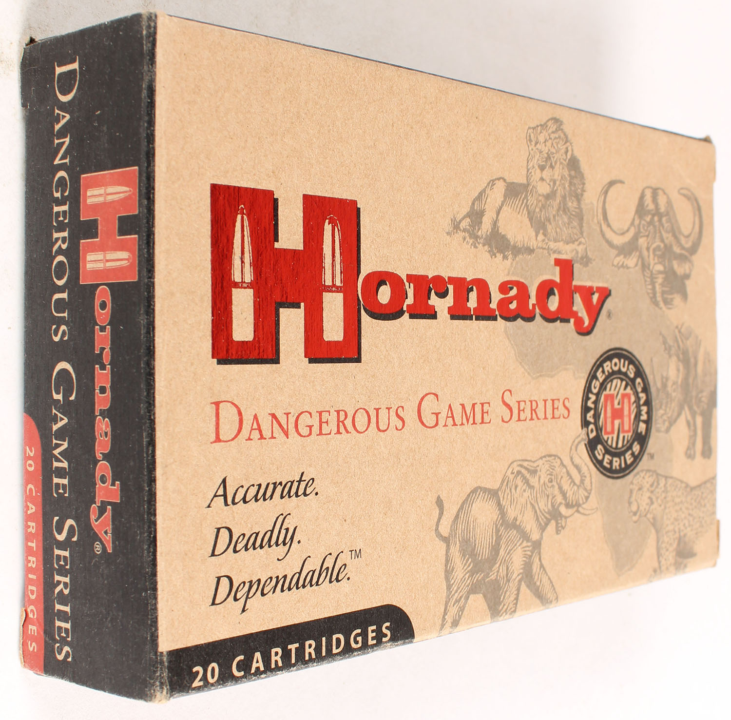 Hornady, Dangerous Game Series, 375 RUGER, 270 Grain SP-RP Superformance, Full, 1pc., multi-colored box, box has excellent color, ammo is excellent. Grade: MINT - Value: 20 to 60