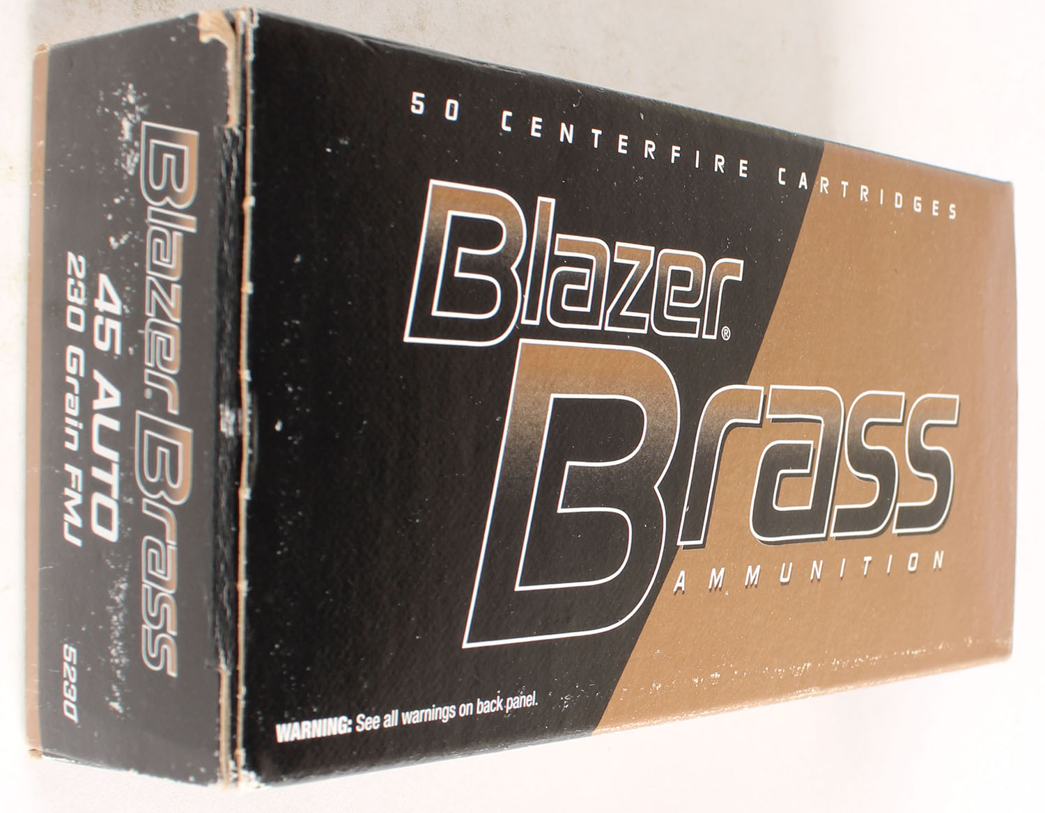 CCI, Blazer Brass, 45 Auto, 230 Grain FMJ, Full, 1pc. multi-colored box, box is solid with excellent color, Ammo is very good. Grade: Excellent - Value: 20 to 50