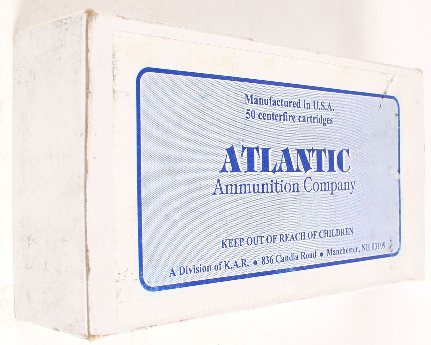 Atlantic Ammunition Company, 45 Auto, 200 Gr. Semi wadcutter, Full, 1pc, white box with blue label, box is solid with some scuffing, ammo is good. Grade: Very Good - Value: 10 to 40