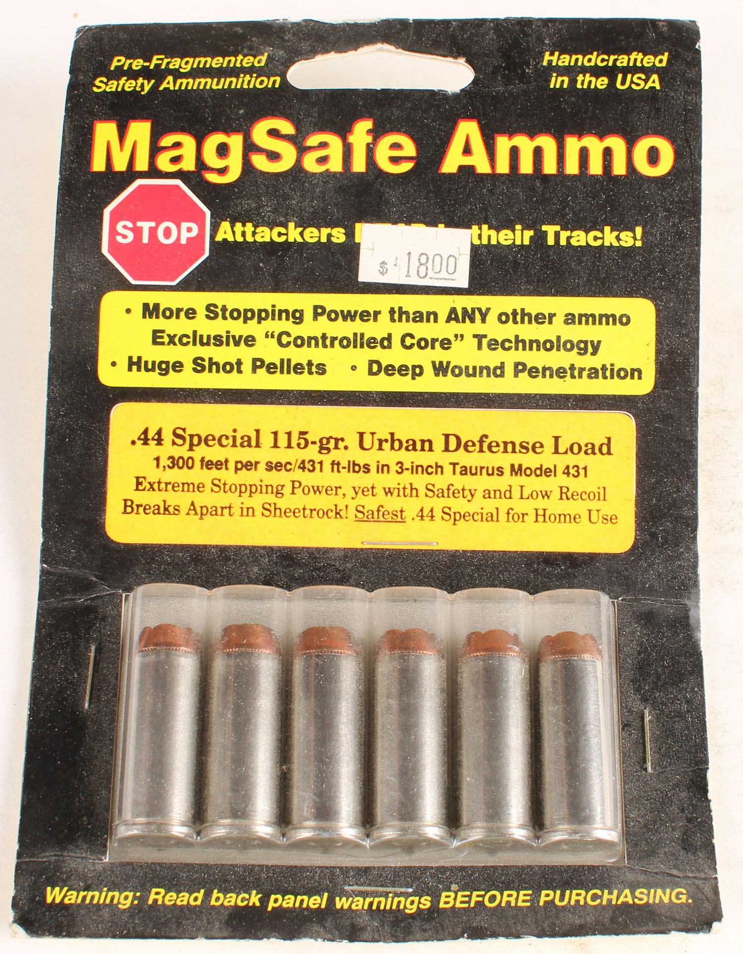 MagSafe Ammo, .44 Special, 115 Grain Urban Defense Load, Full, 1pc, multi-colored case, ammo is excellent. Grade: Very Good ++ - Value: 10 to 30