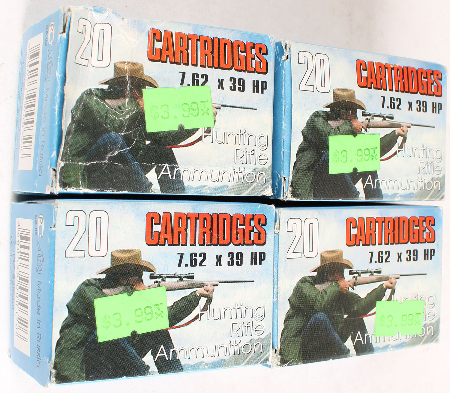 | Lot of 4 JSC Barnaul, Hunting Rifle Ammunition, 7.62 x 39 HP, 12...