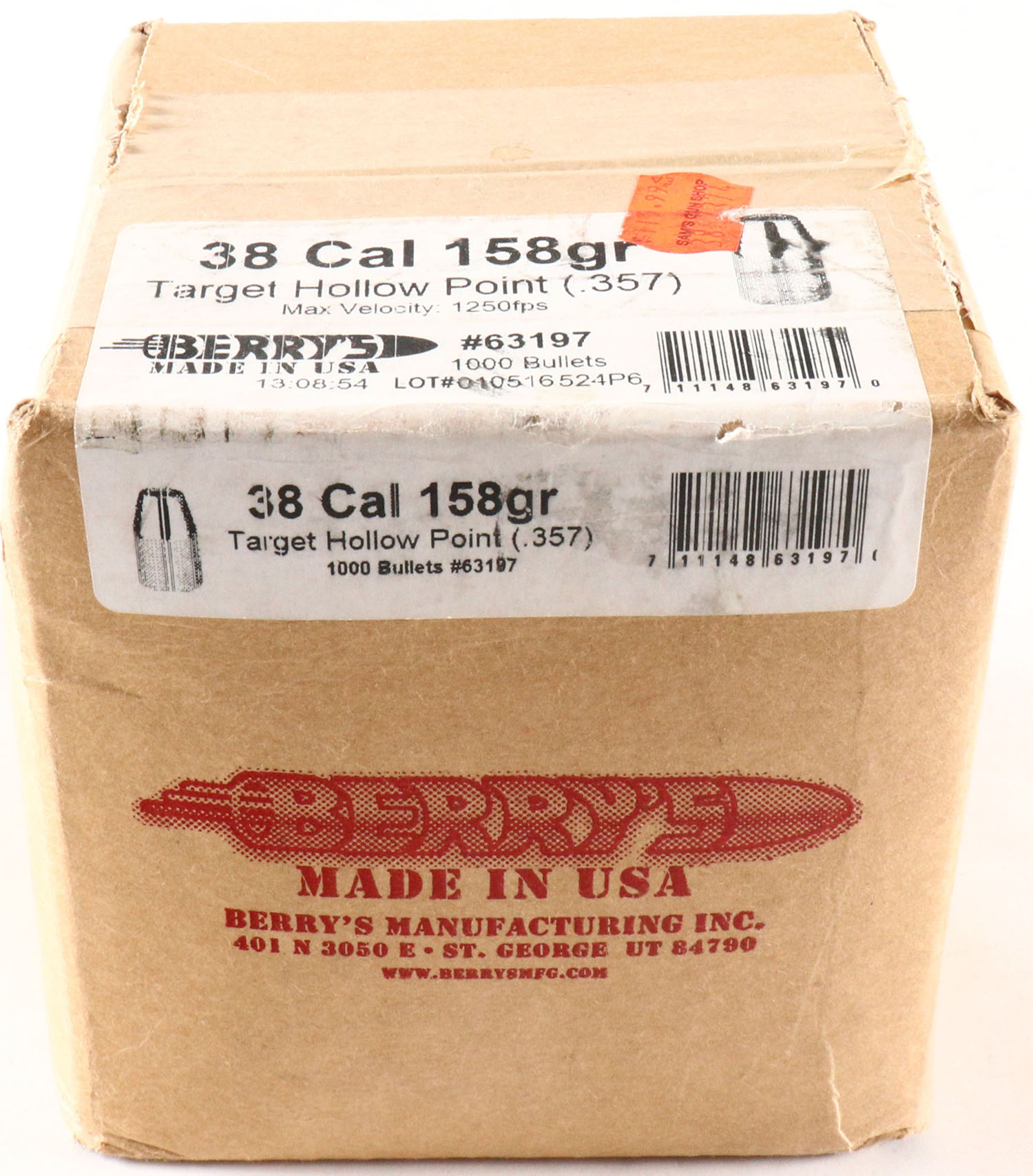 Full Box of Berry's Hard Cast Bullets, (6) 38 Cal. (.357), 158gr Target Hollow Point, 1000 count, retail value of 200.00. Grade: MINT - Value: 50 to 200