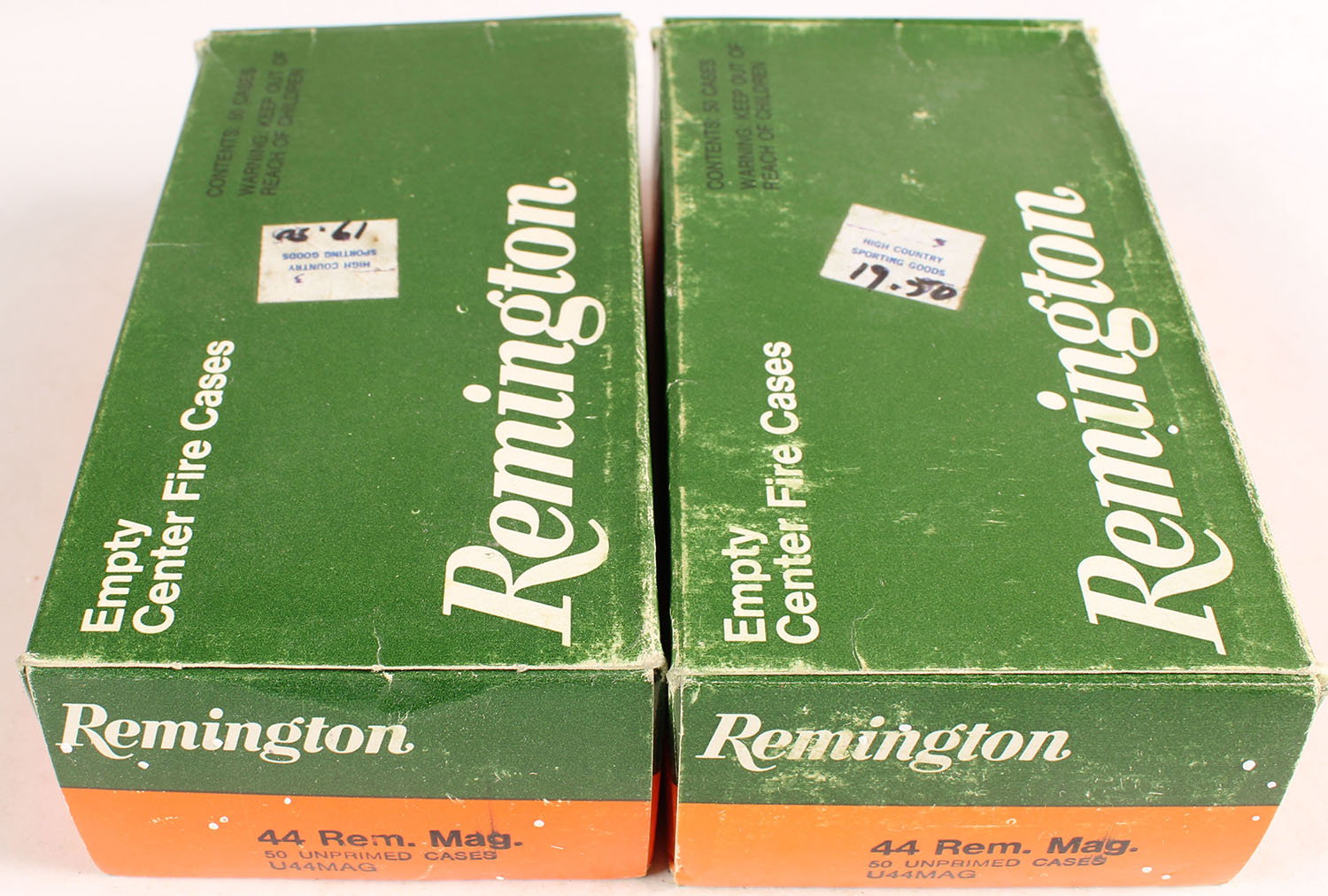 Lot of 2 Remington, .44 REM. MAG. Unprimed brass cases, 1pc., Full. Grade: Excellent - Value: 10 to 50