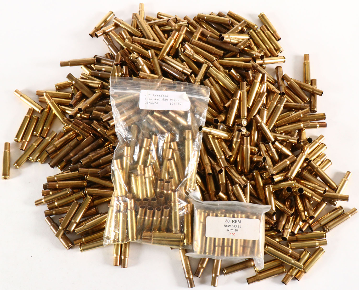 Large Lot of .30 Rem., unprimed brass, H/S: R-P 30 REM, brass is excellent. Grade: Excellent + - Value: 10 to 100