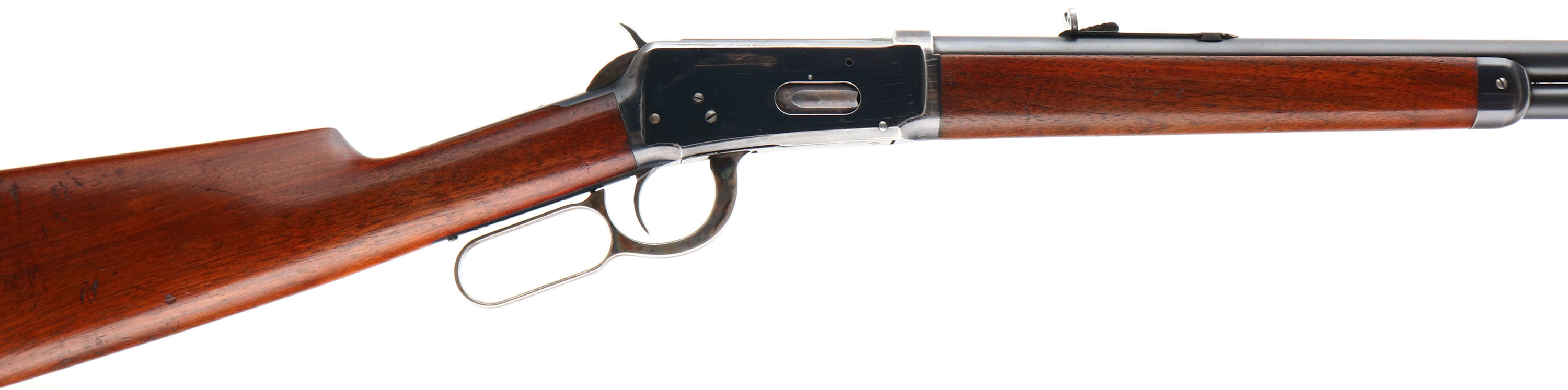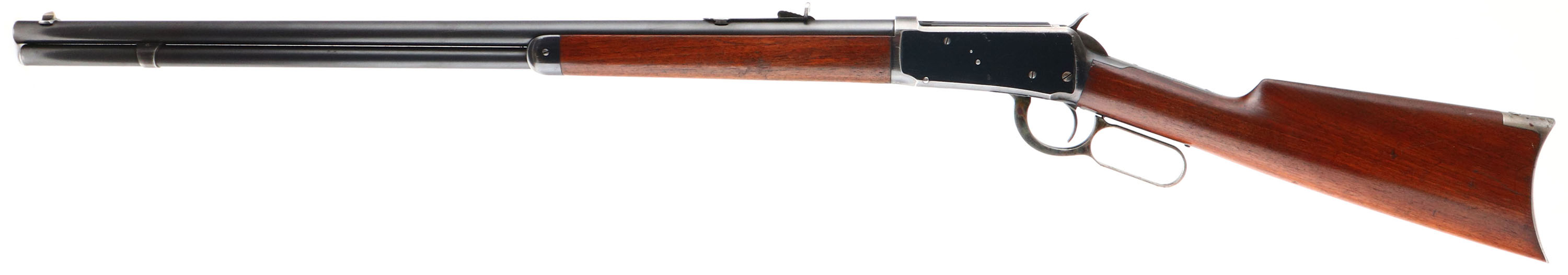 FANTASTIC Winchester, Model 1894, marked 38-55, MFG: 1898 (Antique), SN: 49267, Lever Action Rifle, 26'' Round Barrel, Full mag. The original wood stocks are excellent, with several minor scuffs, scratches or contusions to the original finish. Some thinning of the finish at the carry points of wrist & belly of forend. The original factory metal blue finish is 95% on barrel & mag, 85% blue on the receiver. The case-hardened lever & hammer display strong remains of case-colors. Bore is excellent. Barrel fitted with factory adjustable rear & pinch blade front sights. Metal crescent buttplate, with faded outlines of case-colors. Tight smooth action. An overall excellent & all original condition antique rifle, which has strong collectability. Antique, No FFL Req. - Value: 5000 to 7500