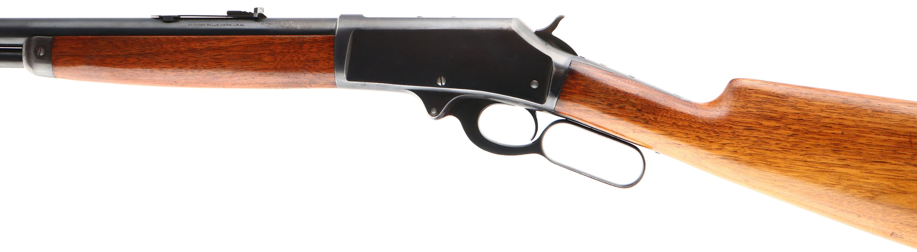 FANTASTIC & RARE J. Stevens, Model 425 High Power, marked Cal. 32 REM, MFG: 1911-17, SN: 3010, Lever Action Rifle, 22'' Round barrel, 2/3 length mag., The 425 was designed by John Redfield & represented the J. Stevens Arms & Tool Companies entry into the centerfire arena. Although some sources erroneously claim there were 26,000 of these rifles produced, that is incorrect. More commonly accepted amongst knowledgeable collectors & factory historians is that less than 5,000 were produced & possible less than 1,000. The model was only produced or cataloged from 1911-17 & was serialized with at least one other Stevens model produced during this period, thus accounting for the confusion surrounding serialization. Peter Zobian, a prominent 425 collector has concluded from his research & exhaustive search, that Brophy's information in the Marlin book is most likely correct in that Steven (Savage) only made less than 1,000 of these rifles. As of 2010, his research had only turned up 117 examples, serialized between 1,021 & 5,594 in the four calibers, .25, .30, .32 & .35 REM. Remember other models also fall into that same serialization. Regardless of which production figure is actually correct, this model is one of the rarest of the lever models produced during the glory era of lever action rifles, competing with Winchester, Marlin & Savage rifles. The original walnut wood stocks are excellent, displaying very few light scratches & minor contusions to the original & excellent finish. The original metal blue finish rates 95% overall. The top of receiver carries the two factory screw filled holes. Matching SN is located on the inside of the original crescent metal buttplate, on the left side of the upper tang under the wood & on the lower tang under the lever. Bore is excellent. Barrel carries the original adjustable rear & small blade front sights. This is likely the nicest example we have ever offered of this rare & collectible rifle. FFL or C&R Req. - Value: 2000 to 3500