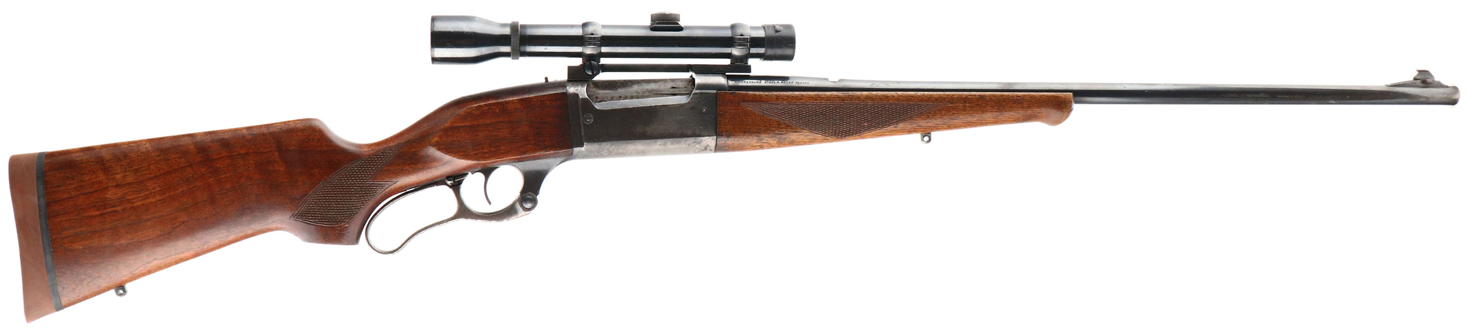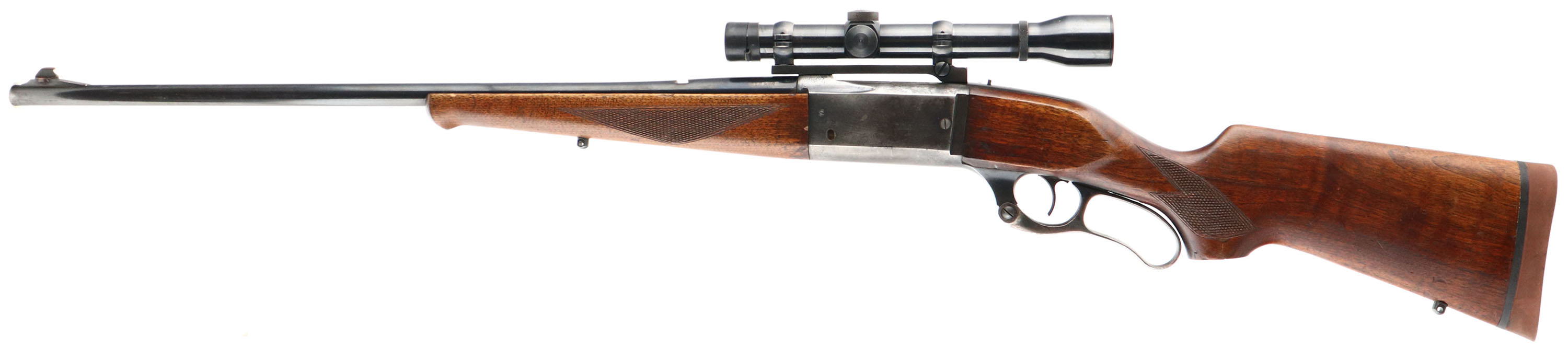 Savage, Model 99, CAL: 358 WIN, MFG: 1956, SN: 923960, Lever Action Rifle, 24'' Round barrel. The original checkered & flat pistol grip wood stock & Schnabel forend are very good, with several minor scratches, scrapes & contusions to the original thinning finish. Missing the pistol grip cap. The original metal blue finish on the barrel rates 75%, while the finish on the receiver has worn mostly gun metal gray, with a spotty thin brown patina & some light rust pitting. Receiver has been tapped & drilled to carry a Sears 3.5 scope on a Leupold base. Barrel has an open rear dovetail & a ramped tall blade front sight. Bore is excellent. The stock carries a Hogue solid recoil pad. Action remains smooth & tight. Sling studs. FFL or C&R Req. - Value: 500 to 1000