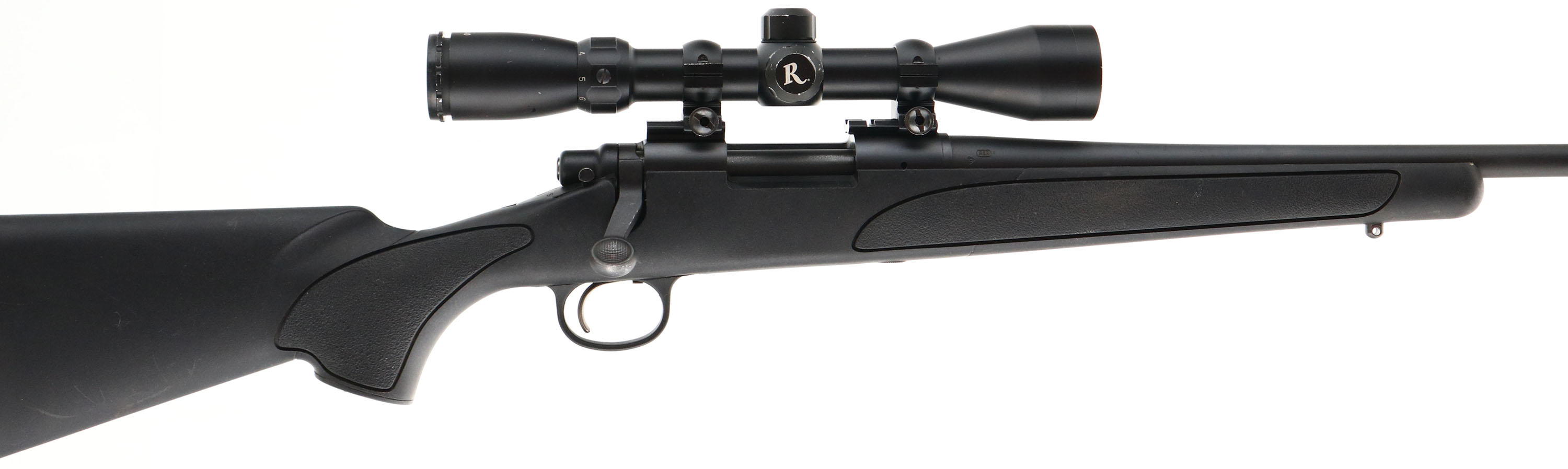 Remington, Model 700, CAL: 243 WIN, MFG: Modern, SN: G7091003, Bolt Action Rifle, 24'' round barrel. The original cheeked & flat pistol grip synthetic stock is excellent, with textured grip insets at the pistol grip & forend. The factory metal finish rates 99% overall. Bore is excellent. The receiver holds a Remington 3-9x40 scope, while the barrel has no sight provisions for front & rear sights. Stock carries the factory Remington solid recoil pad. Sling studs. FFL Req. - Value: 500 to 800