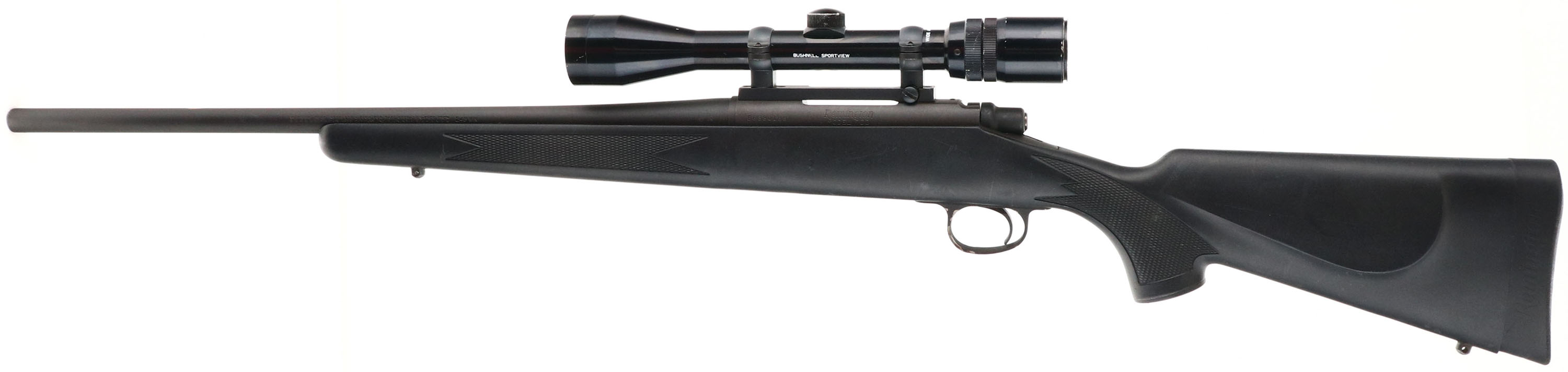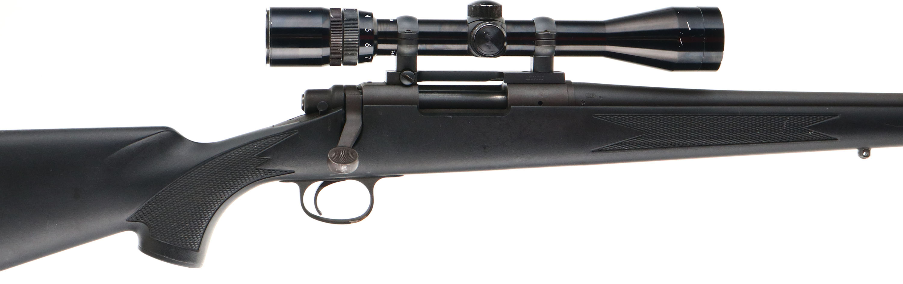 Remington, Model 700, CAL: 243 WIN, MFG: Modern, SN: E6380186, Bolt Action Rifle, 20'' round barrel. The original cheeked, checkered & flat pistol grip synthetic stock is very good, with several minor rubs, scuffs or light scratches. The factory metal finish rates excellent overall, however there is chipping & flaking to the finish on the trigger guard. Bore is excellent. The receiver holds a Bushnell Sportview Wide Angle 3-9x scope, while the barrel has no sight provisions for open sights. Stock carries a Remington Super Cell solid recoil pad. Sling studs. FFL Req. - Value: 500 to 800