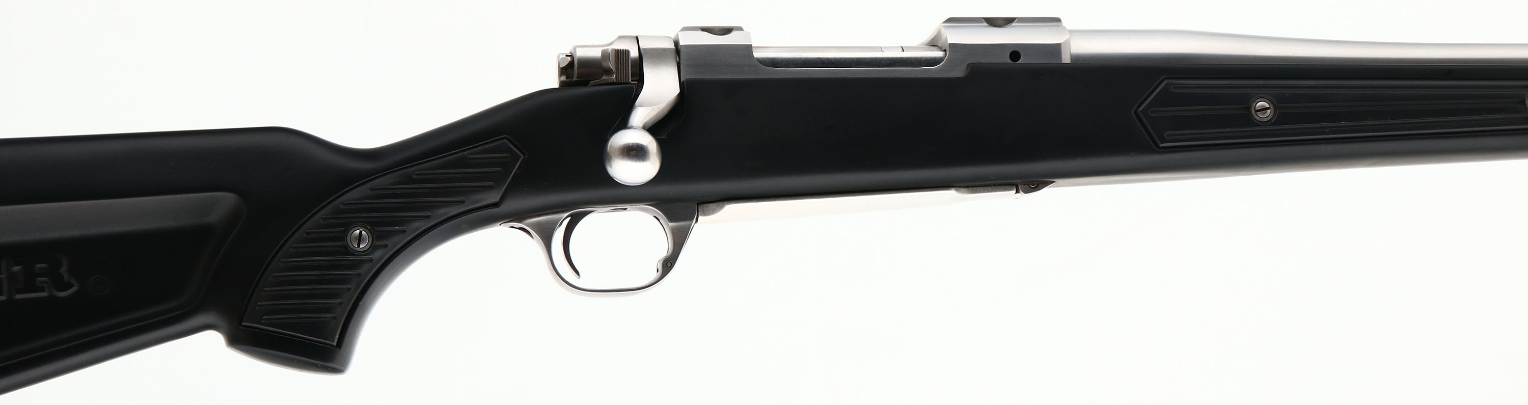 Ruger, Model M77 MARK II, Stainless All Weather, 22-250 REM Cal., MFG. 1996, SN: 784-31731, Bolt Action Rifle, 22'' round barrel, The factory Zytel synthetic stock (sometimes referred to as a skeleton or boat/canoe paddle stock) is excellent, but does have some minor scrapes, scuffs or scratches, mostly on the grip pads. The stainless steel surfaces have a satin silver finish, which is excellent, but with some minor rubs, scratches & fine brush lines. Bore is excellent, Factory recoil pad & sling loops. Grooved receiver for scope mount. No sight provisions. A high quality, all weather, bolt action sporting rifle. FFL Req. - Value: 800 to 1500