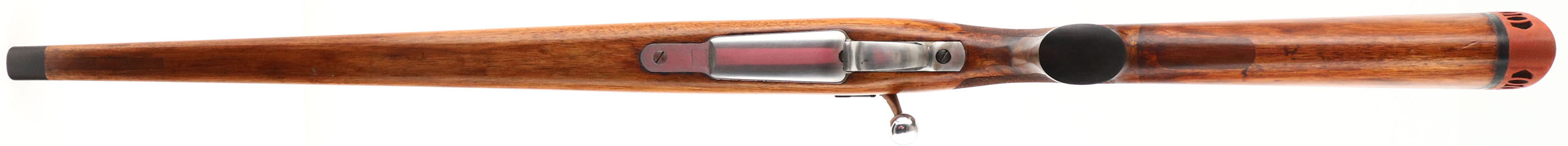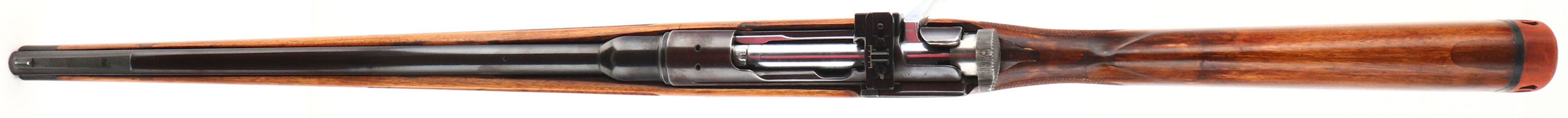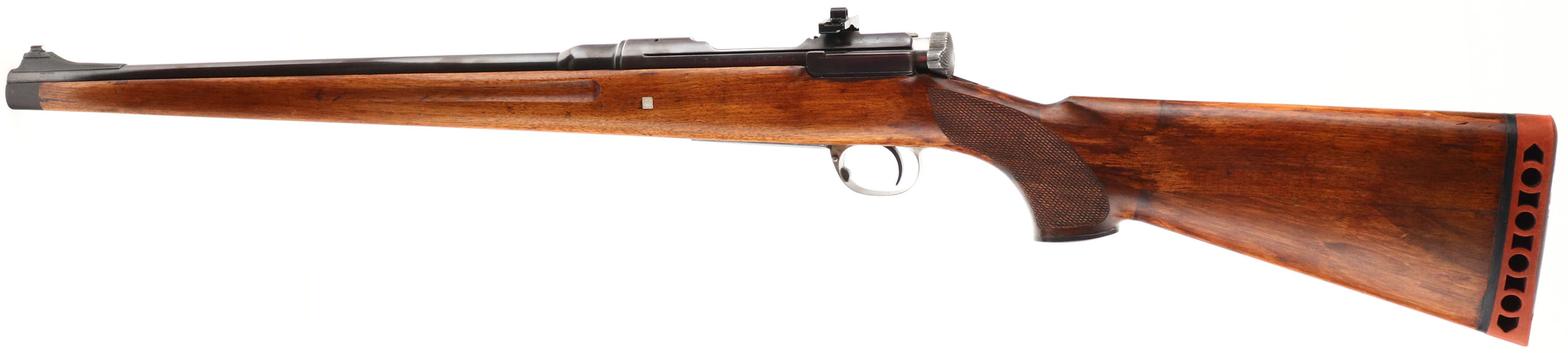 Sporterized Rifle, Built from a Tokyo Arsenal Type 38, CAL: 6.5x257mm, MFG: 1900-20, SN: 1386005, Bolt Action Rifle, 18 1/2'' Round barrel. The original stock has been altered with a number of inlaid & grafted wood sections & recontoured into a sporterized, checkered & capped pistol grip Mannlicher style stock. It was sanded & refinished & is very good, with few light handling or use marks. The metal surfaces were buffed, polished & reblued, retaining 85% reblued finish. The barrel appears original, having been cut down & carrying a replaced ramped tall blade front sight, while the receiver carries an adjustable Williams right side mounted sight. The receiver & barrel was polished, removing most of the original military markings & was refinished with what is currently a high polish plum/brown finish. The original trigger guard & floorplate have been polished silver. Bore is good & cleaned bright, but does have spots of roughness amongst thinned rifling. Stock carries a Red Head ventilated recoil pad. Silver polished bolt handle. FFL or C&R Req. - Value: 250 to 500