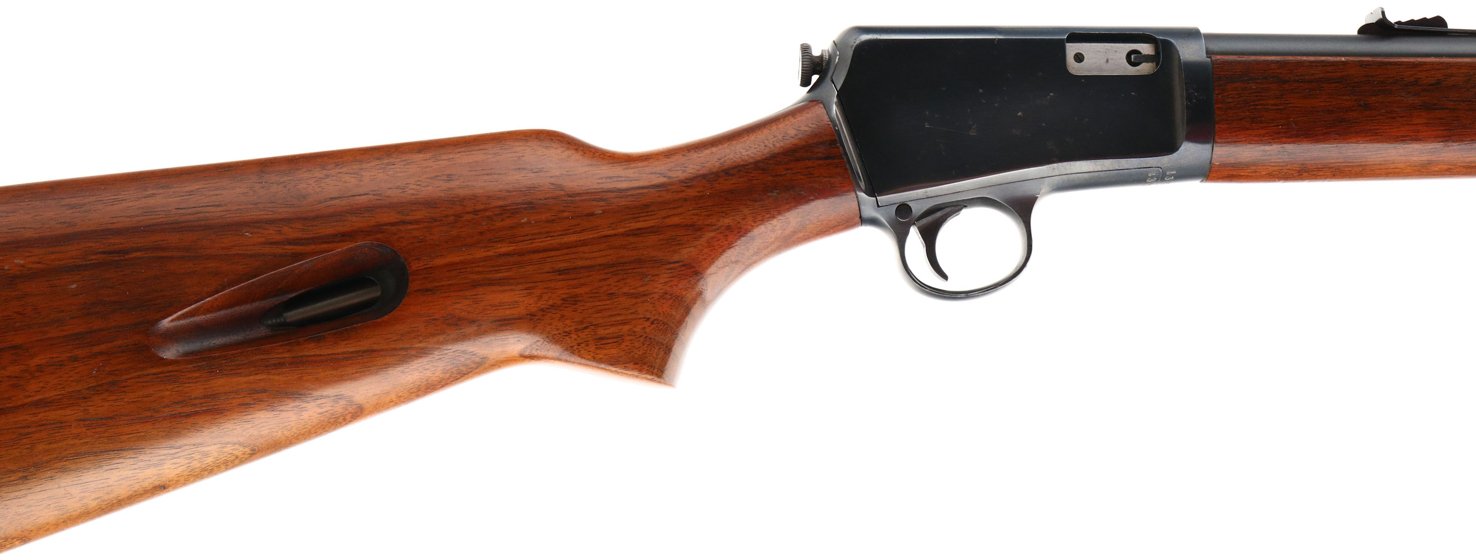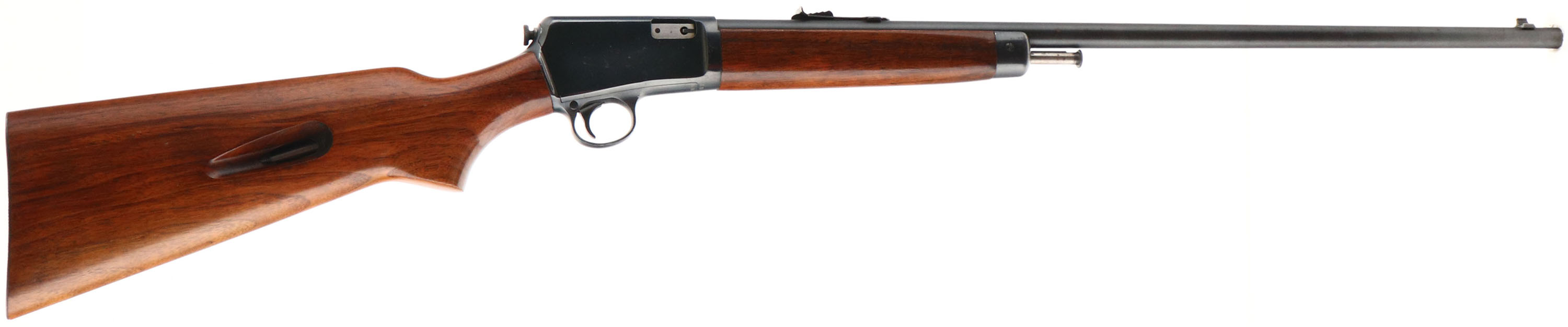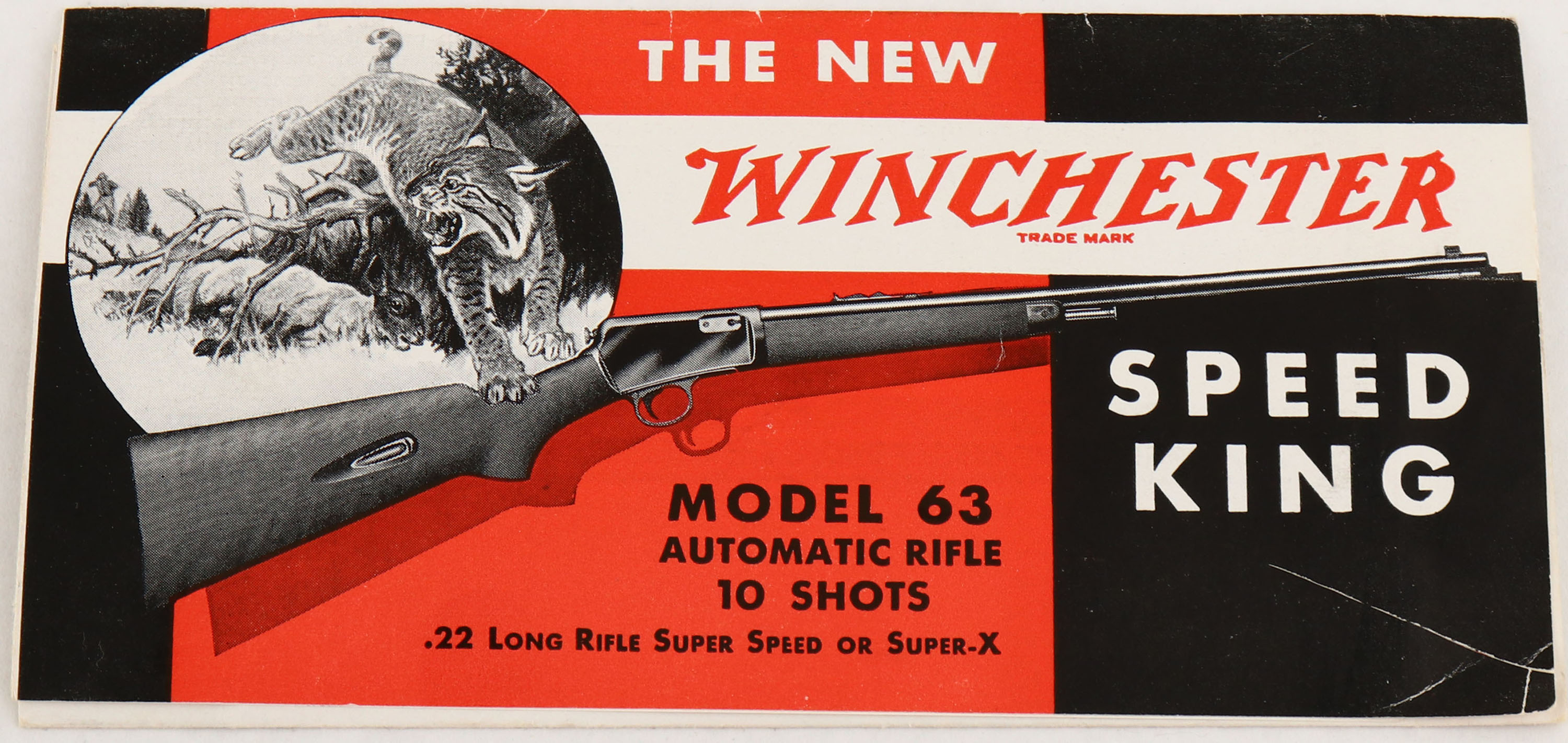Winchester, Model 63, .22 LONG RIFLE SUPER SPEED & SUPER-X Cal., MFG: 1956, SN: 139294A, Semi-Auto Action Rifle, 23'' tapered round barrel. The original factory flat pistol grip wood stocks are excellent, with original finish & a few small finish level blemishes or very minor contusions. The original metal blue finish rates 95%, with small areas of spotty light pitting on the right side of receiver. Bore is excellent. The rifle is fitted with an adjustable rear & factory front sight. Factory metal buttplate. Comes with an original Winchester brochure announcing the new Speed King Model 63 rifle. A very nice original semi-auto rifle. FFL or C&R Req. - Value: 800 to 1500
