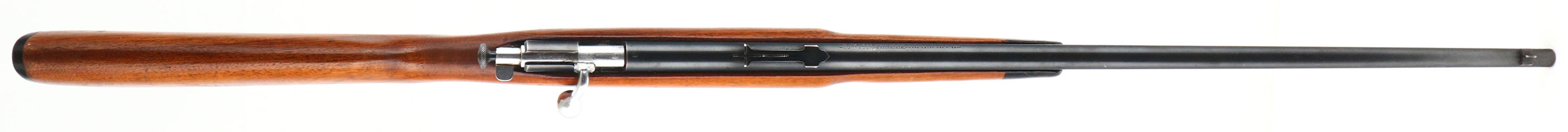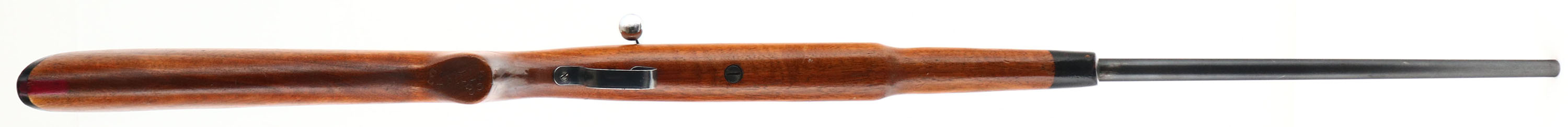 Winchester, Model 67, 22 S, L, LR Cal., MFG: 1934-63, SN: None, Bolt Action Rifle, 27 1/8'' Round barrel. The flat pistol grip wood stock is very good & solid. It has been recontoured or narrowed at the forend & refinished. The stock has some minor scrapes, scratches & contusions. There is a small ''HM'' lightly scratched into the right side of the forend. A set of #'s has been carved into the flat of the pistol grip & the matching #'s are electric pencil engraved onto the bolt. The metal blue finish is 90% overall. Bore is very good. Barrel mounted with an adjustable rear sight & small blade front sight. There is a bit of pink fingernail polish at the toe of the rifle. Winchester plastic buttplate. FFL or C&R Req. - Value: 150 to 300