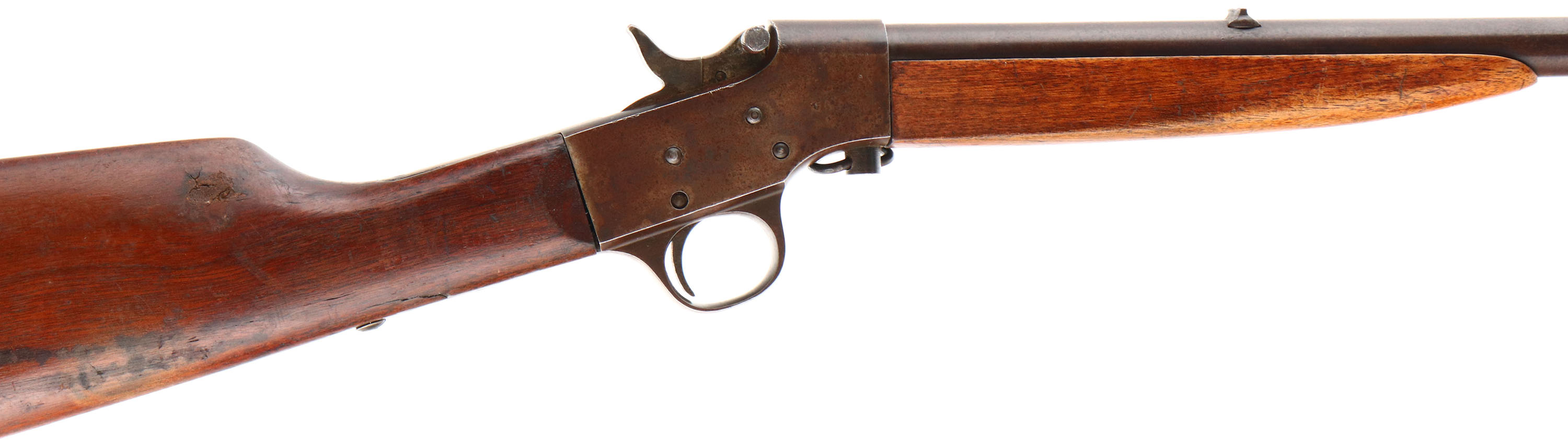 Meriden, Model 10, CAL: Marked .22 Short & Long, but will fit a LR, MFG: 1910-17, SN: NONE, Single Shot Rolling Block Rifle, 22'' barrel. The straight grip wood stocks are verry good & solid. The buttstock has three small stress cracks at the wrist & a small fill repair on the right side near the comb. There are numerous minor contusions, scratches & scrapes. The metal blue finish on the barrel has toned to a brown patina. The case-hardened frame has also toned to a brown patina. Bore is poor, dark & rough. Fixed notch rear sight & blade front sight. Smooth metal buttplate. FFL or C&R Req. - Value: 80 to 150