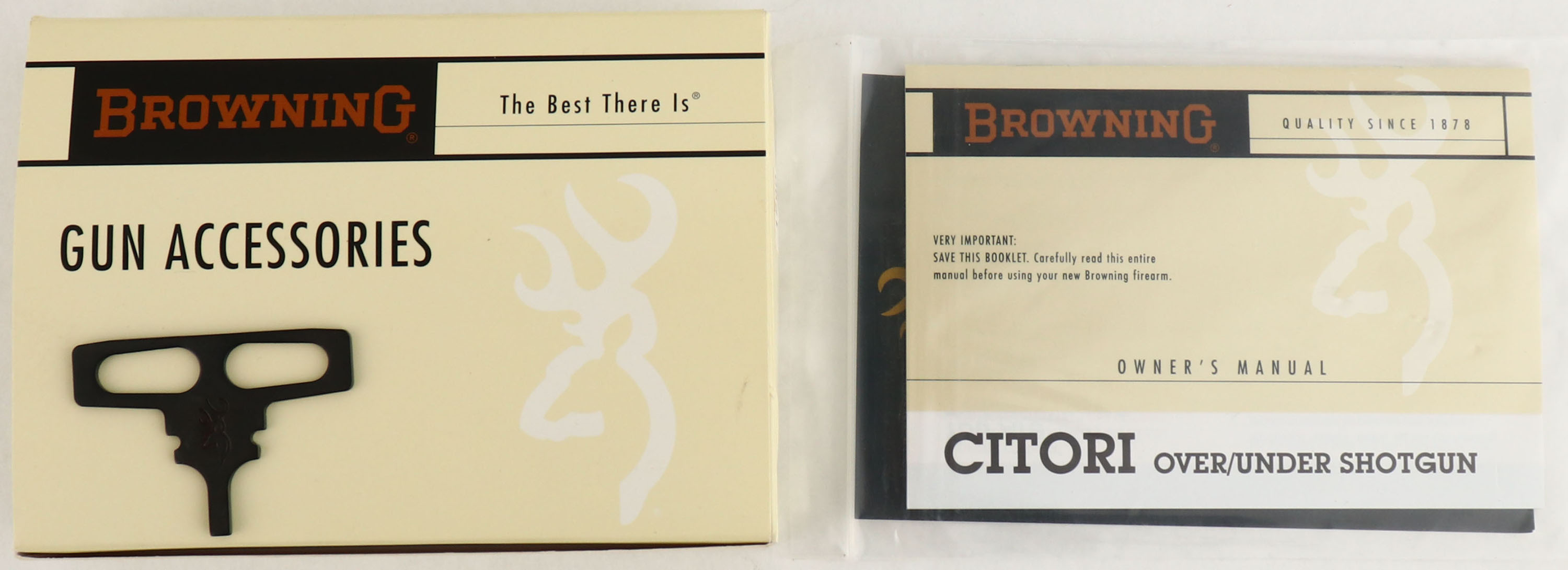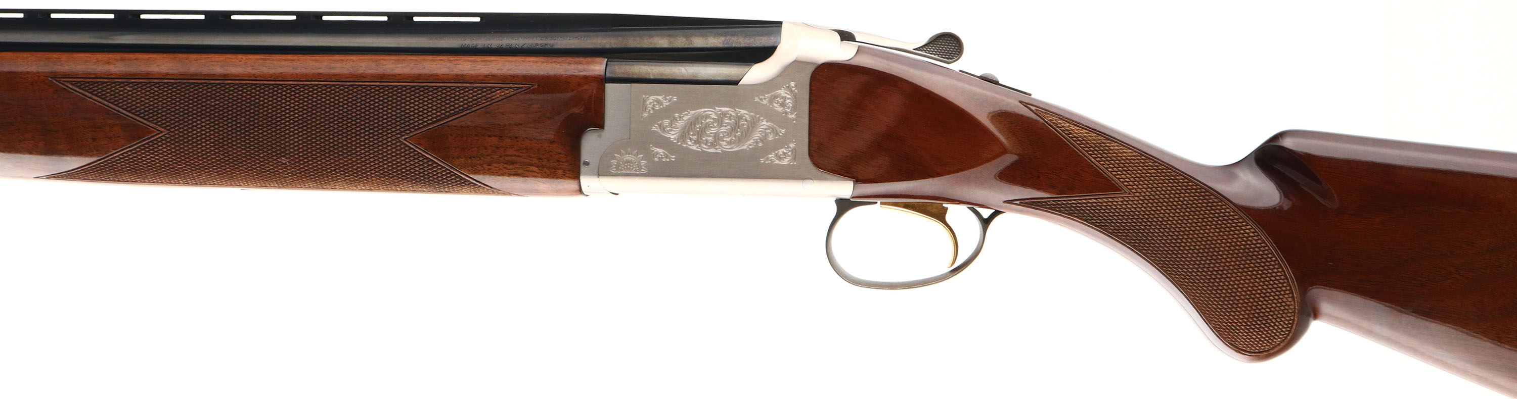 Browning, Citori 725 Featherweight Super Light - Grade I (Miroku), CAL: 12GA, MFG: 2006, SN: 15735MT131, Break Action O/U, 28'' barrel. The checkered round knob wood stocks are excellent. The high gloss finish is excellent, near mint. The metal blue finish rates 99% on the barrels & the coin silver receiver is excellent. Both sides of the receiver display simple ornamental scroll engraving & the bottom of the receiver has a gold falling feather. The bottom of the trigger guard has a gold Browning logo. Bores are excellent. The ventilated rib holds a single silver front bead. Stock has a Browning, ventilated brown rubber recoil pad. LOP: 14 1/4'' overpad. Comes with owners manual & partial accessory kit. A nearly new condition Citori shotgun. FFL Req. - Value: 2000 to 2500