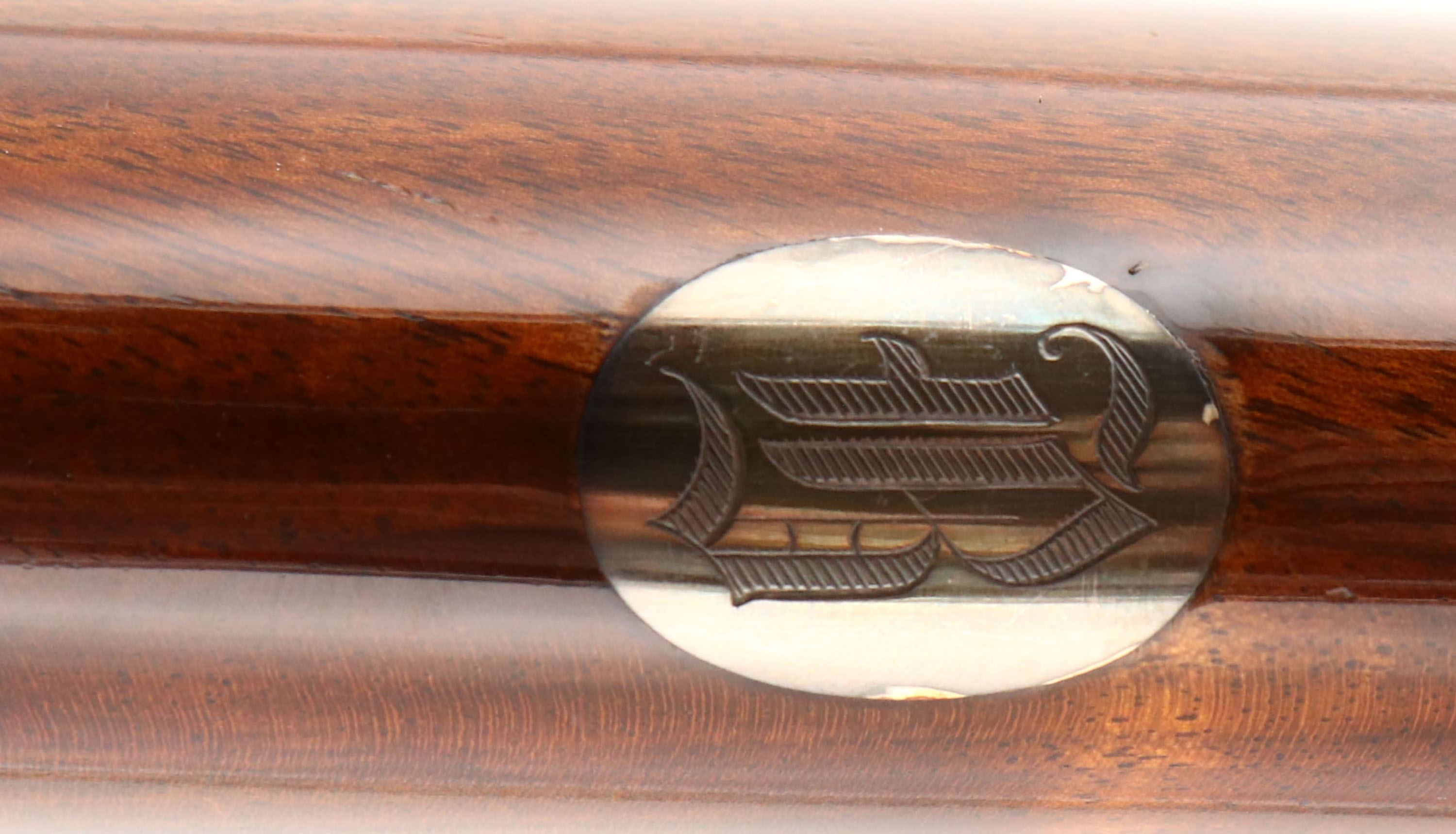 CASED, Miroku, Model 800- Skeet Gun, CAL: 12GA, MFG: Mid 1960's-74, SN: 112191, Break Action O/U, Choke: IC/IC, 26'' barrel with ventilated rib. The original checkered & capped pistol grip stocks are excellent. The high gloss finish is excellent. There is an engraved initial plate in the belly of the stock, marked ''B''. The metal blue finish on the barrels rates 97% & the engraved coin silver receiver is excellent. The hand engraved receiver displays decorative floral scroll work & accent engravings on the break lever, trigger guard & forend release lever. Bores are excellent, with visible striations. The ventilated rib holds a small mid-rib bead & front bead. Stock carries a Pachmayr ventilated black rubber recoil pad. Comes with a Browning Hartmann case. Case condition is very good, with light age soiling both inside & out. LOP: 14 1/2''.* FFL or C&R Req. - Value: 800 to 1200