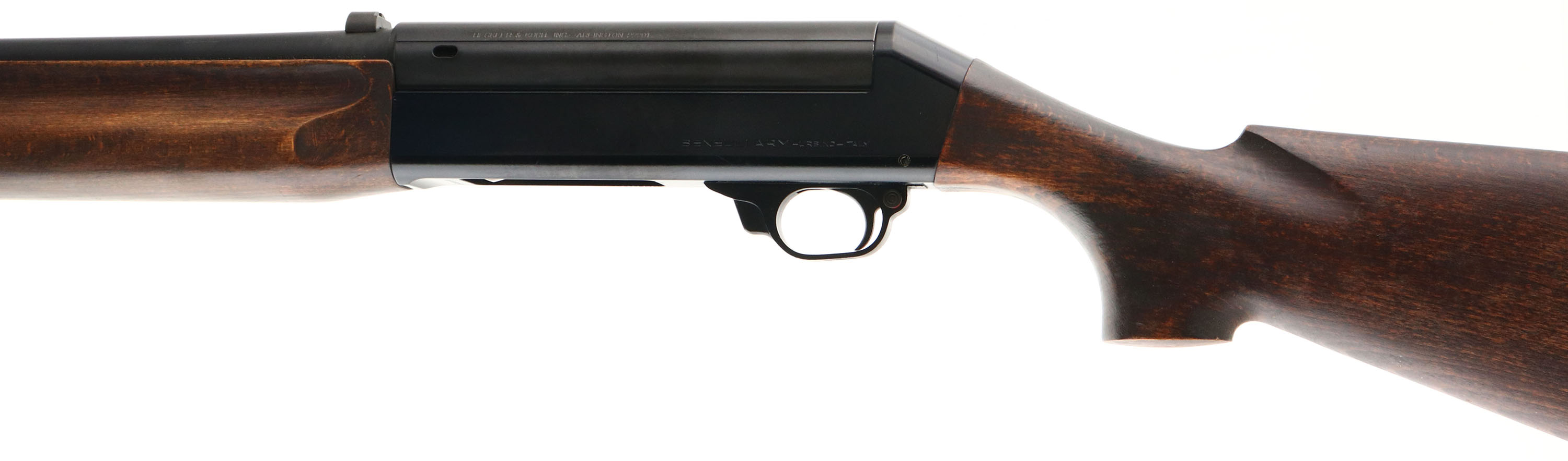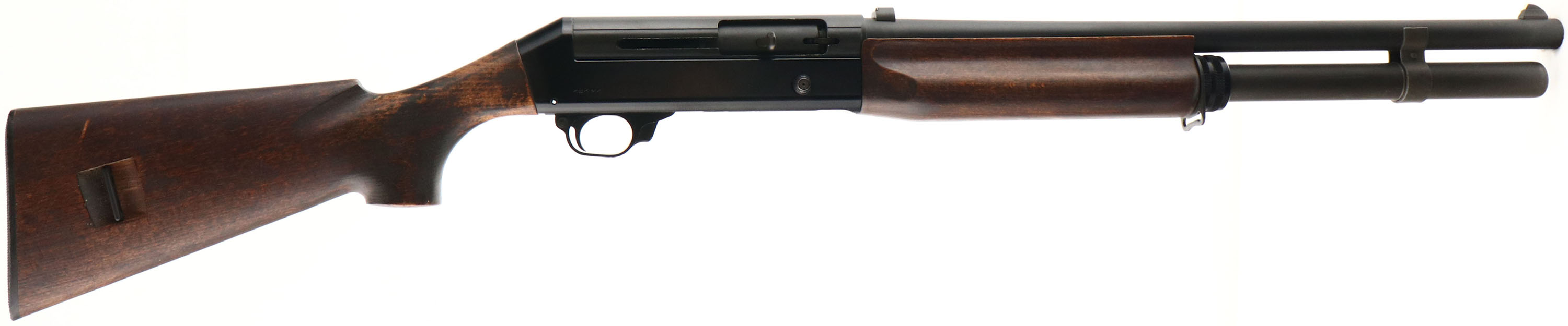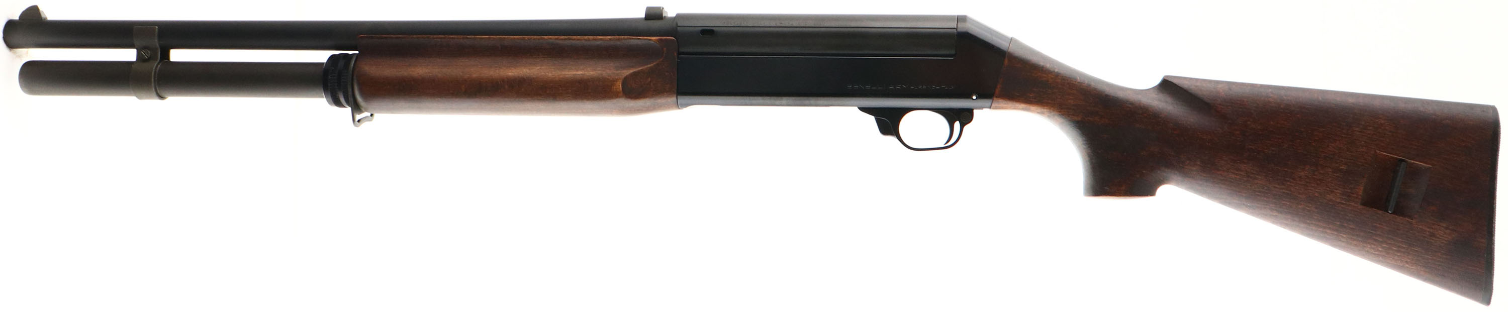 Benelli Armi, Model 121 M1, CAL: 12 GA, MFG: 1978-85 (Italy), SN: 20013, Semi Auto Shotgun, Choke: CYL, 2 3/4'', 19 3/4'' barrel, with extra long mag tube. Imported by Heckler & Koch INC. The original flat pistol grip stocks are excellent. There are very few handling or use marks, but some thinning of the original finish at the wrist. The original metal finishes rate 95% overall. Bore is excellent. Factory front & rear sights. The tube holds 7 rounds of 2 3/4'' shells. Buttstock carries the original buttplate. Sling provisions on right side of stock & on mag tube. FFL Req. - Value: 400 to 800