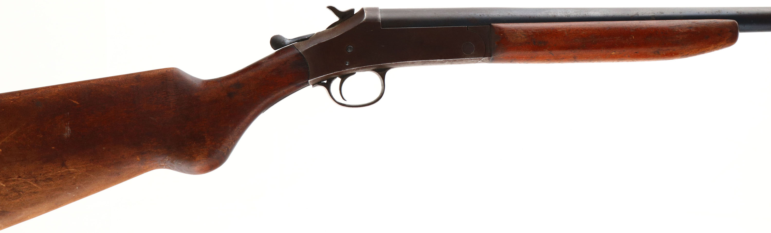 Eastern Arms Co. Model 105.9, CAL: 20GA, MFG: 1943-56, SN: A652630, Break Action Single Shot, Choke: IC, 28'' barrel. The round knob wood stocks are good. There is a grain crack on the top of the wrist, along with numerous nicks, dings, scratches & thinning/flaking finish. The metal blue finish on the barrel rates 50%, with spotting & areas fully toned to a brown patina. The case-hardened receiver shows remnants of case-colors under the brown patina. Bore is good & bright, with visible wear & some roughness. Single front bead. Grooved plastic buttplate. FFL or C&R Req. - Value: 80 to 160