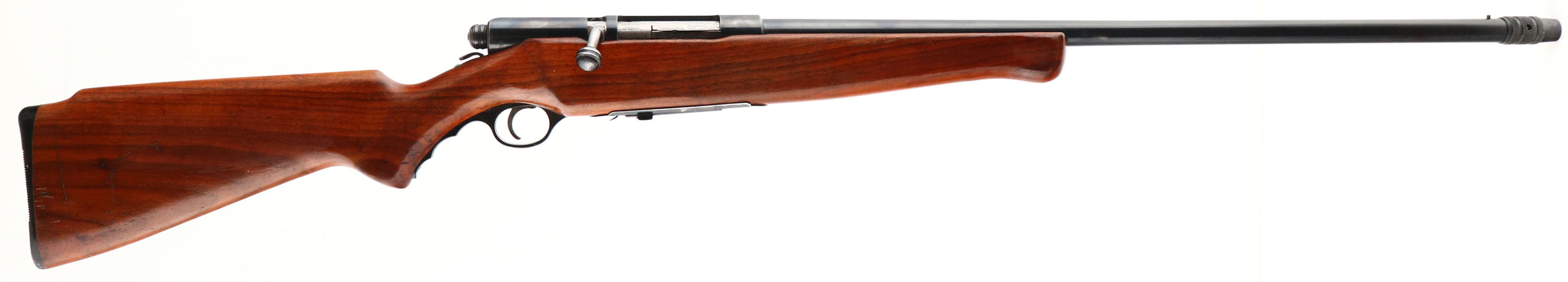 O.F Mossberg & Sons, Model 185D, CAL: 20GA, MFG: 1950's, SN: NONE, Bolt Action Shotgun, Screw-on choke system, 25'' barrel. The flat pistol grip Monte Carlo style stock is very good. There are contusions, dings, light scratches & scrapes, with an added layer of finish that's thinning in areas. The metal blue finish rates 90% overall, with intermittent scrapes & spotting toned to a brown patina. Bore is excellent. Single front bead. Grooved black plastic buttplate. Finger groove plastic trigger guard. FFL or C&R Req. - Value: 100 to 200