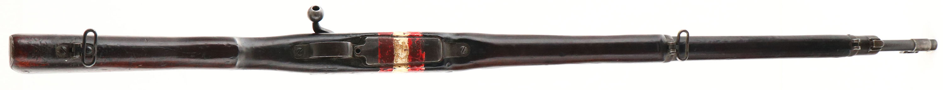 Eddystone, Model: P14 drill purpose rifle, Cal: .303 British, MFG: 1916, S/N: 64890, Bolt action rifle, 26'' barrel. The semi-pistol grip wood stock is very good with nicks, dings, scratches & wear from use/age. The stock has darkened from oils & age. The stock has been painted around the magazine to indicate this a drill rifle only & not meant to be fired. Both cheeks of the stock have paint markings & faded cartouches. The metal finish rates 70% with areas of wear/thinning & areas starting to tone brown. The top of the receiver is marked with British proofs, a faint ''DP'' stamp, ''ERA'', & the S/N. the bore rating is irrelevant since a steel rod has been inserted to the chamber & welded in place ruining the barrel. The barrel holds a blade front sight with protective ears. The rear of the receiver has a elevation adjustable aperture rear sight. The stock carries a steel trapdoor buttplate. The rifle has both sling swivels but is missing the stacking swivel. These rifles were converted to drill use only for the British, they would paint the red & white strips on the guns & stamp them DP for drill purpose to signify that it was not meant to be fired. They had rods welded into chambers, firing pins clipped or sometimes nothing done to the rifle to stop it from chambering a round & firing. Even though on this rifle you can not physically chamber a round the receiver has not been touched so by ATF rules its still considered a firearm & is being sold with a FFL or C&R Req. - Value: 100 to 300