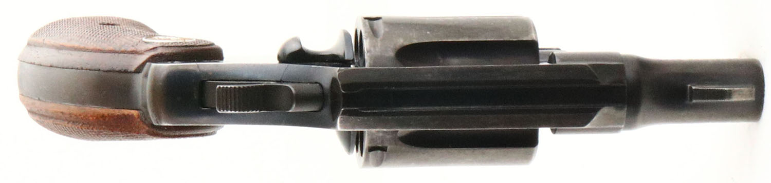 Colt, Detective Special - Post War 2nd Issue, CAL: .38 SPL, MFG: 1956, SN: 689679, Double Action Revolver, 2'' barrel. The Colt logo medallion checkered wood grips are very good & solid. There is a smoothed sliver chip on the right grip next to the front strap, alongside other minor handling marks & an added coat of protective oils. The original metal blue finish rates 80% on the barrel & 70% on the frame, with areas of thinning toned to a brown patina. Bore is excellent. Square notch rear sight & serrated blade front sight. FFL or C&R Req. - Value: 400 to 700