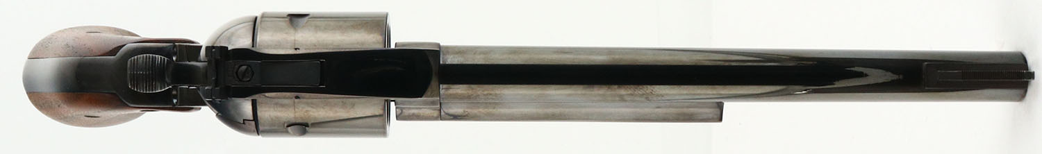 U.S Arms Co. Abilene (Model 508 AB), CAL: 44MAG, MFG: 1970's, SN: 50-003980, Single Action Revolver, 8 1/2'' barrel. The original wood grips with inlaid medallions are excellent. The medallions have a thin aged patina around the edges. The metal blue finish rates 99% overall. Bore is excellent, near mint. Adjustable rear sight & large serrated blade front sight. Comes in factory SN matching cardboard box. Box condition is very good, with some writing on the lid. FFL Req. - Value: 350 to 650