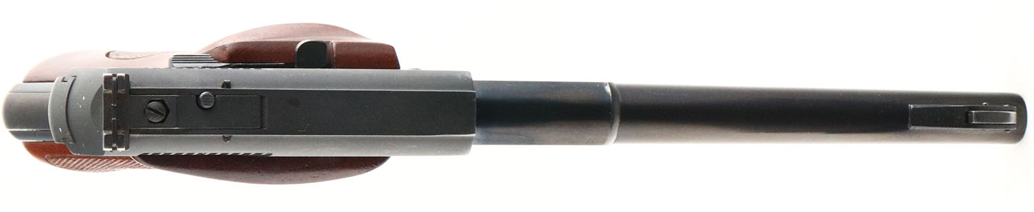 Colt, Woodsman 3rd Series Target, CAL: 22LR, MFG: 1968-72, SN: 031275S, Semi Auto Pistol, 6'' barrel. The factory checkered walnut target grips are excellent. There are minor handling marks to the finish. The original metal blue finish rates 85% on the barrel, & 98% on the frame. There is concentrated wear to the muzzle, sides of the barrel, & front of the slide. Bore is excellent. Adjustable target rear sight & ramp elevated pinned blade front sight. Comes with an extra magazine. FFL or C&R Req. - Value: 300 to 650