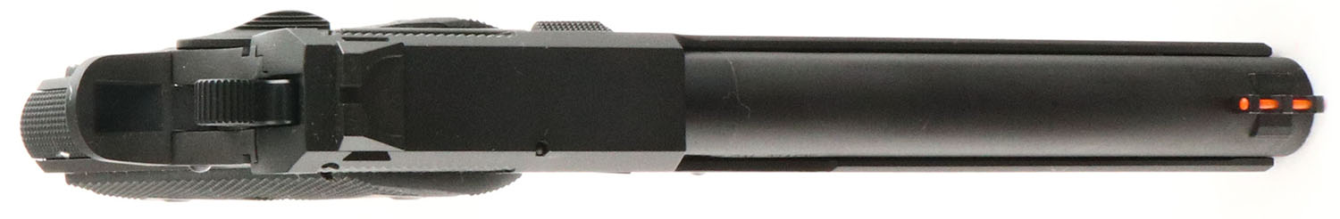 Rock Island Armory, XTM-22, CAL: 22 MRF, MFG: Modern, SN: XTM025476, Semi Auto Pistol, 4 1/2'' barrel. The original checkered hard rubber grips are excellent. The matte black parkerized finish on the frame & slide is excellent, with minor handling marks. Bore is very good, with roughness. Factory square notch rear sight & orange fiber optic rail front sight. Factory mag. FFL Req. - Value: 350 to 500