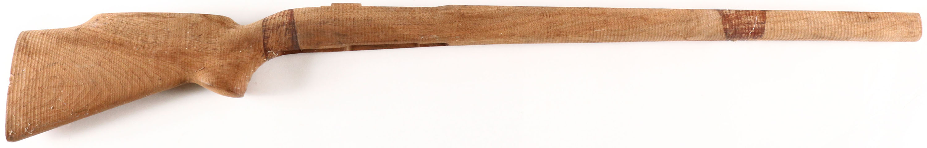 Unfinished rifle stock, semi pistol grip, cheeked, no buttplate, barrel channel not cut out all the way. Grade: Excellent - Value: 10 to 100