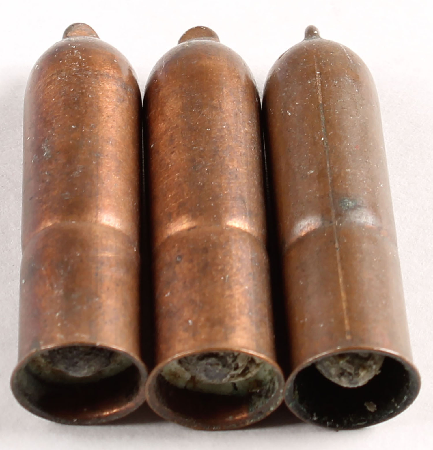 Lot of 3. .32 Teatfire. NHS. Copper Case. All flat teats. Grade: Very Good ++ - Value: 20 to 40
