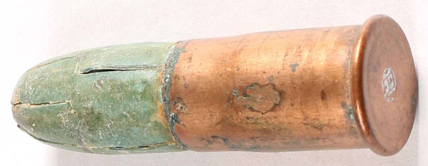 56-52 Spencer Rimfire. HS:''H'' raised. Double Length Green Sabot holding shot. RARE. - Value: 200 to 400