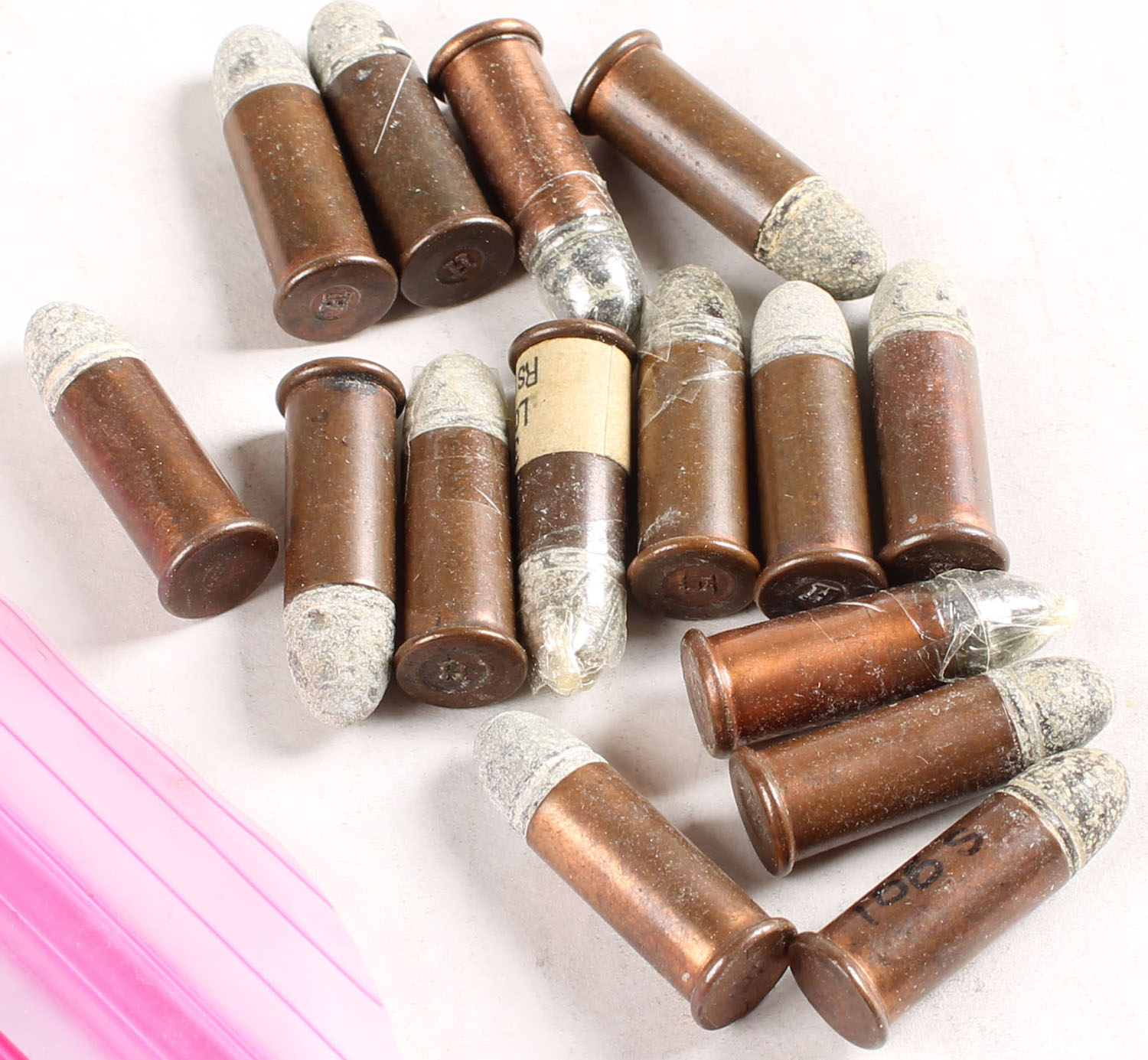 Lot of 15. 30 Long rimfire. HS:''H raised''. RN Lead. Grade: Very Good ++ - Value: 50 to 100