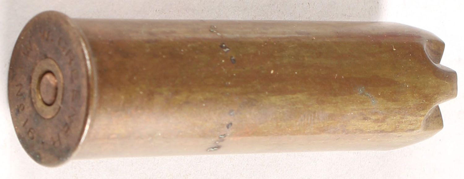 16 Gauge Ball. HS:''W. W. GREENER NO 16'', Round lead ball held in place by six mouth crimps. - Value: 20 to 40