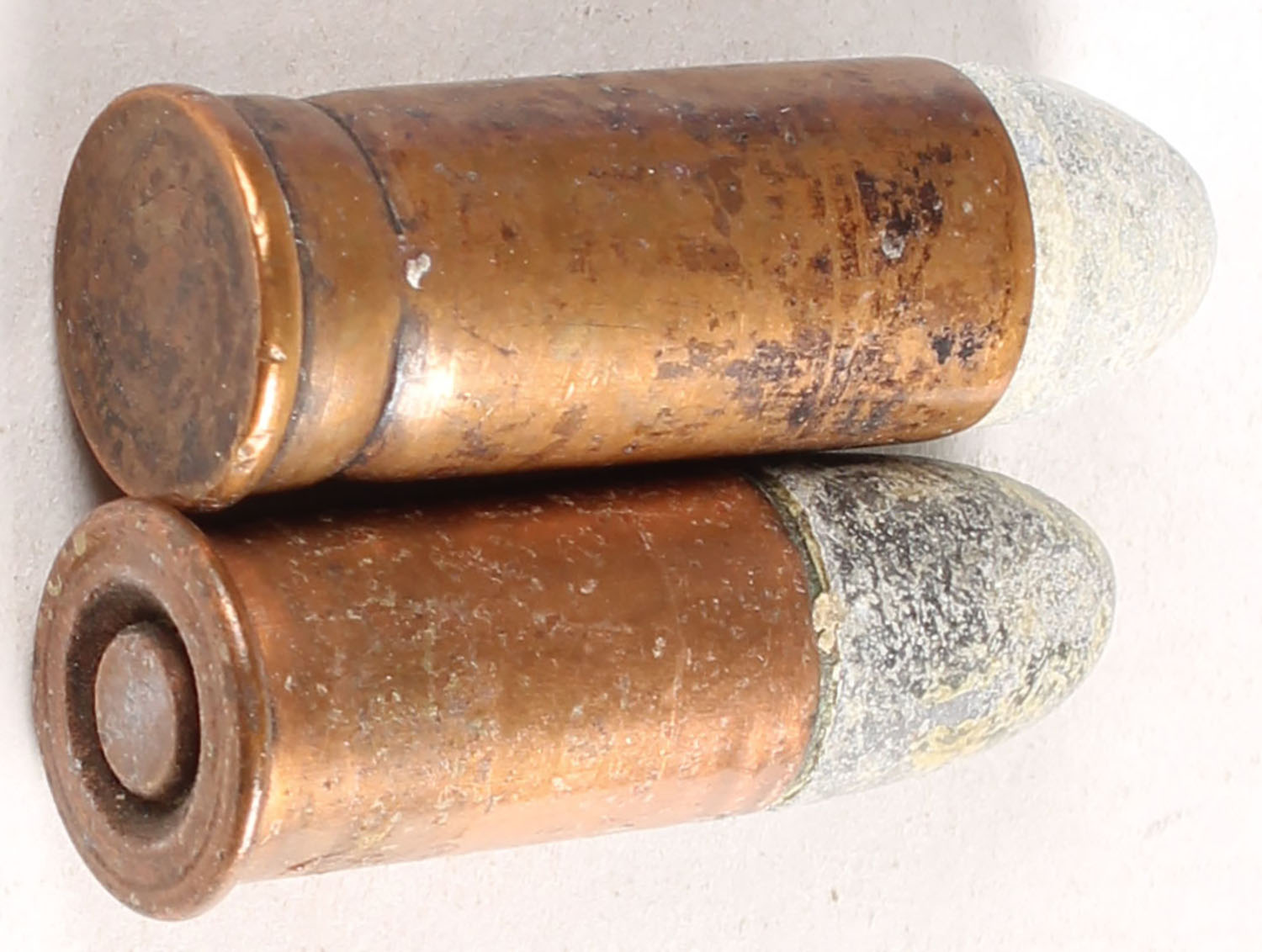 | Lot of 2 Indian War era military revolver cartridges. (1) 44 S...