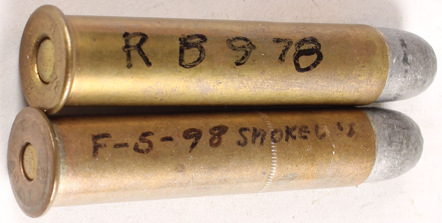 Lot of 2. 45-70 Govt. (1) HS:''R 78 B 9'', RN Lead, contract from UMC. (1) HS:''F 98 5'', RN Lead with ratchet cannelure on case, SMOKELESS load. - Value: 30 to 50