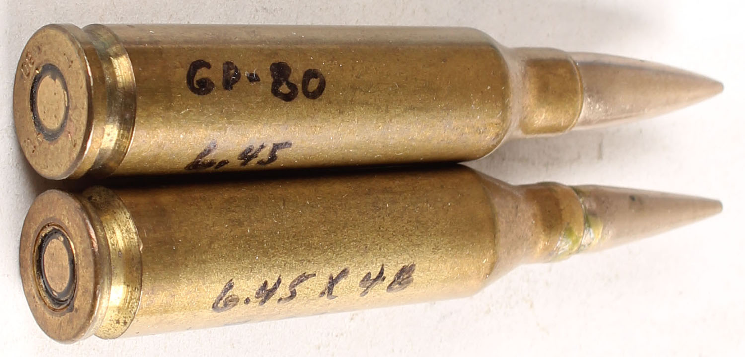 Lot of 2. Swiss Eiger System. (1) 6.45x48mm Swiss Eige4, NHS. PT CN FMJ. (1) 5.56 Swiss Eiger, HS:''7 T 80 T'', PT CN FMJ. - Value: 20 to 40