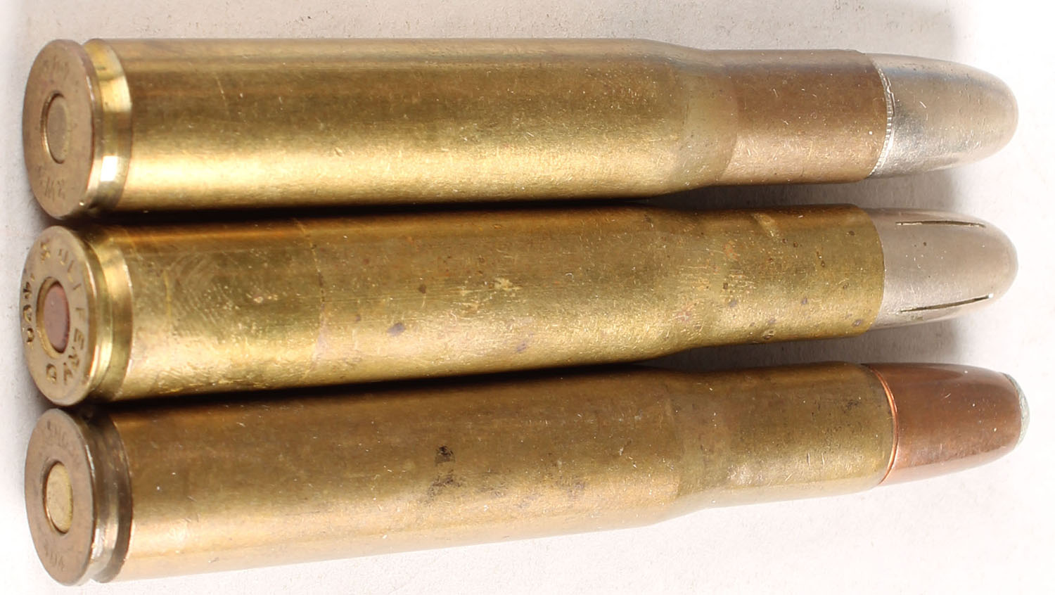 Lot of 3. 404 Jeffery Mauser. (1) HS:''RWS .404'', RN CN FMJ. (1)HS: ''KYNOCH 404'', RN CJ SP. (1) HS: ''JEFFERY C .404 K'', RN CN SP w/slits. - Value: 2 to 50