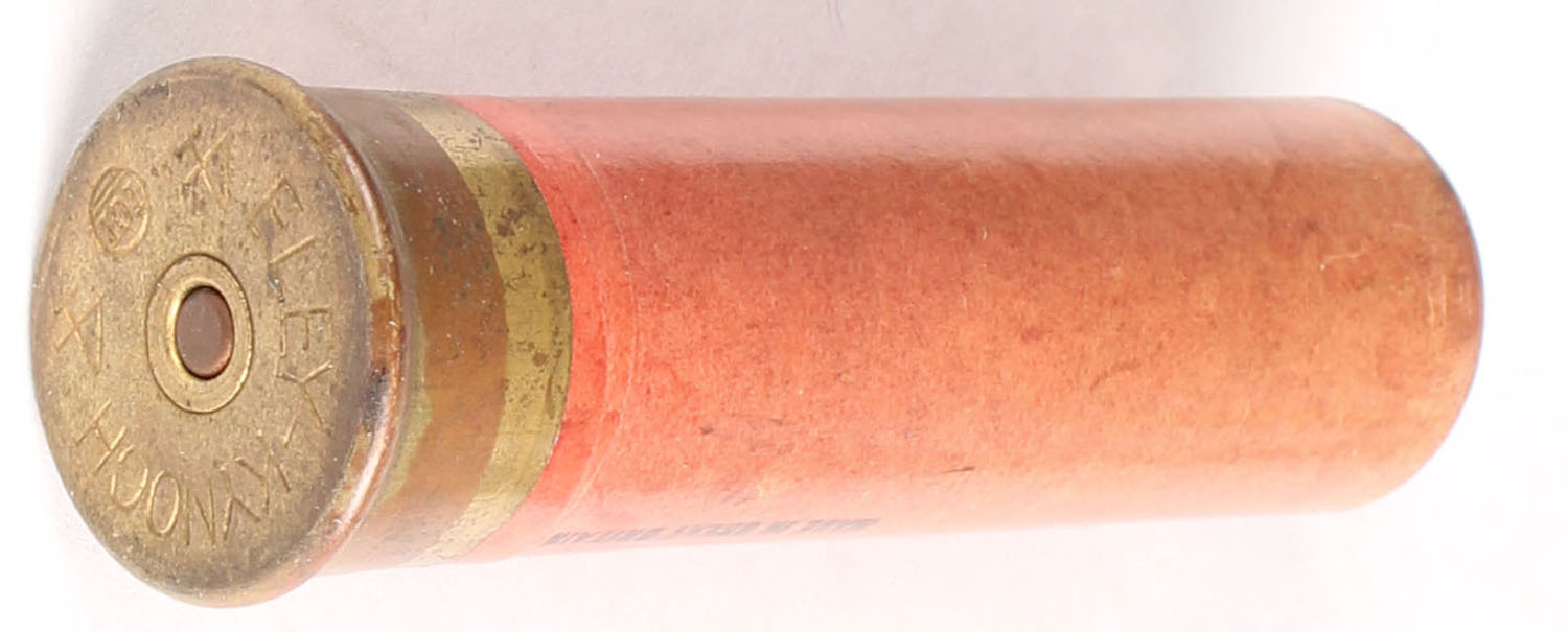 ELEY-KYNOCH No. 4, 3 3/4'' OAL. Loaded red paper case. Grade: Very Good ++ - Value: 50 to 200