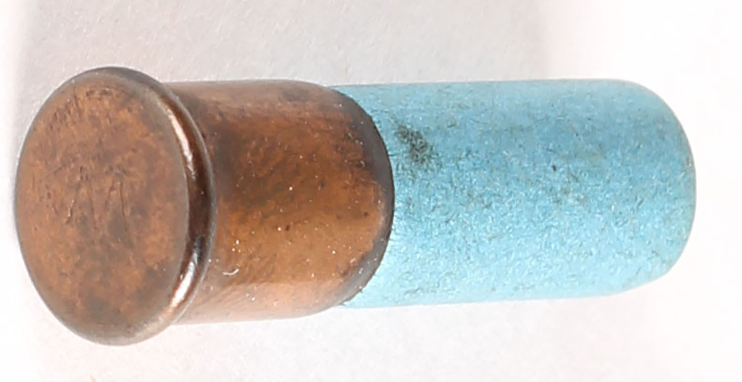 9mm Shot shell by Winchester, blue case, loaded, 1'' OAL. Grade: Excellent - Value: 10 to 40