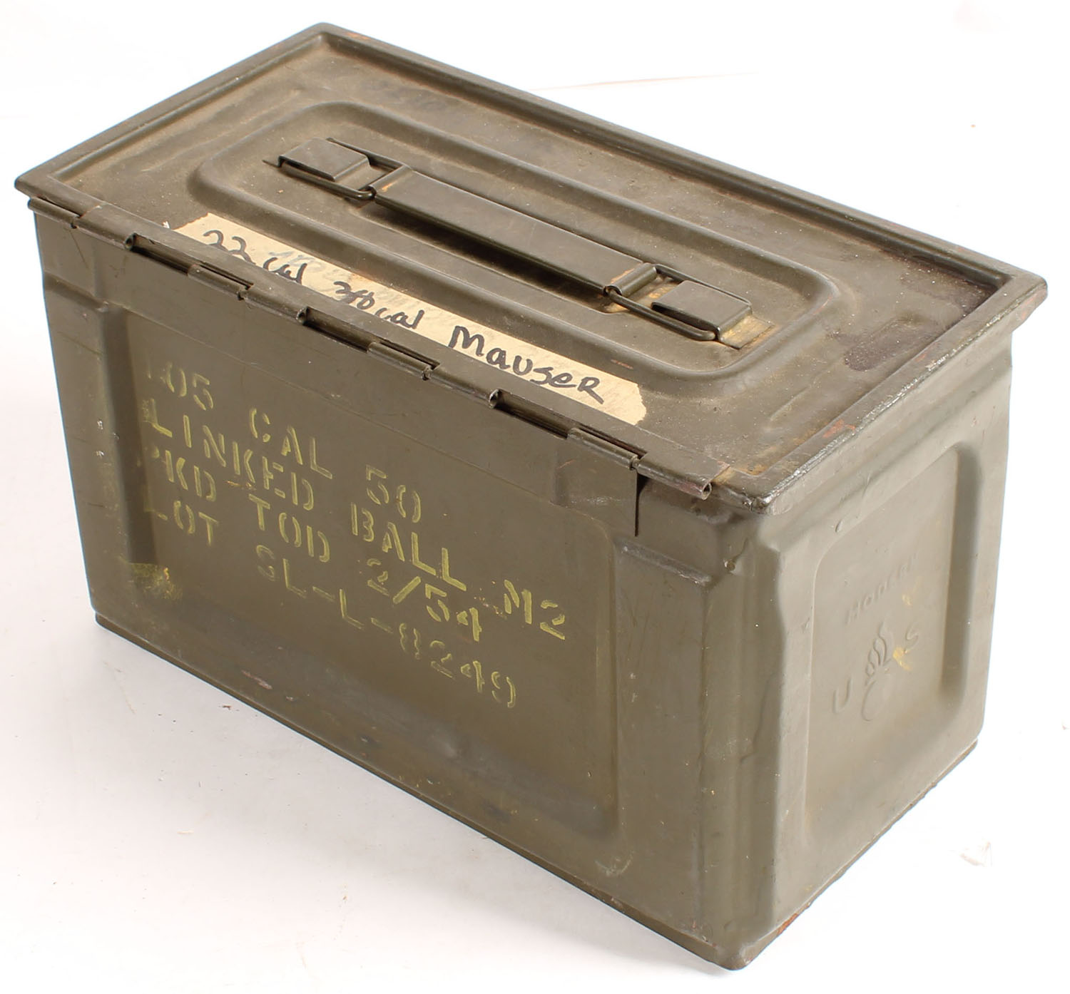 | US, .50 cal side opening can, empty, inside has rust. Grade: Ver...